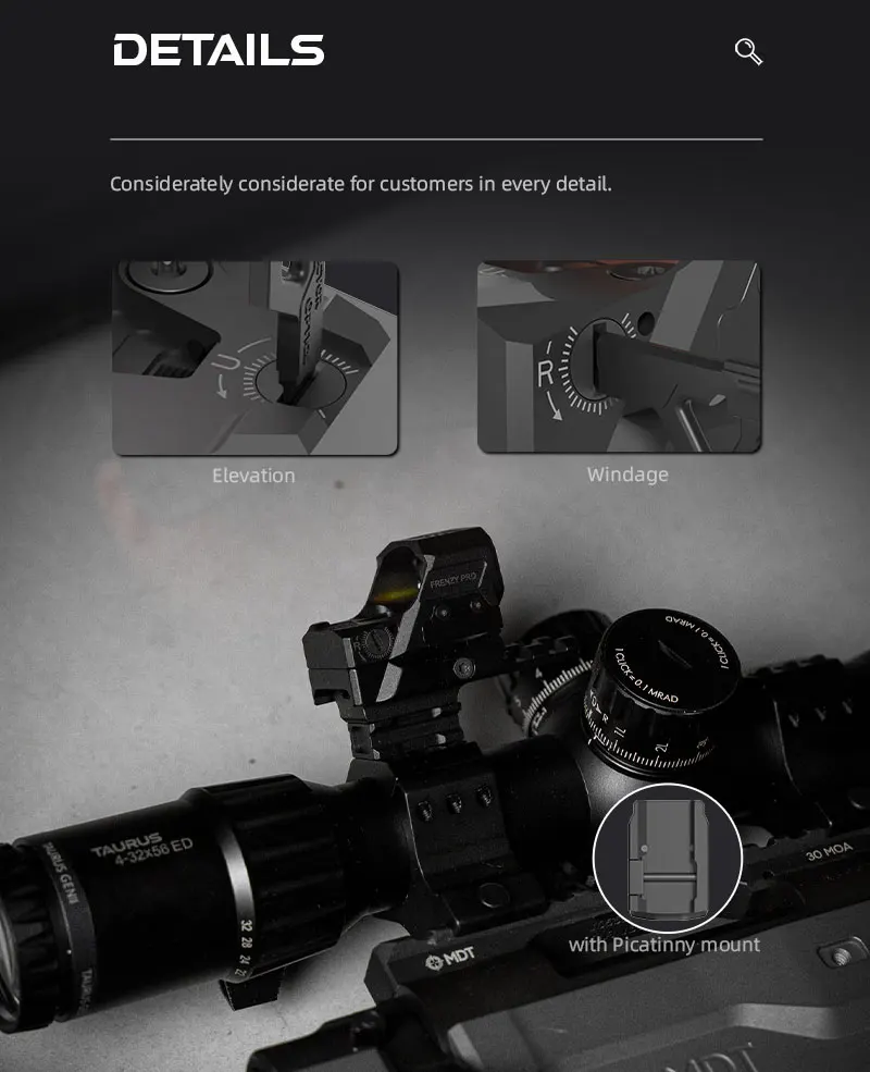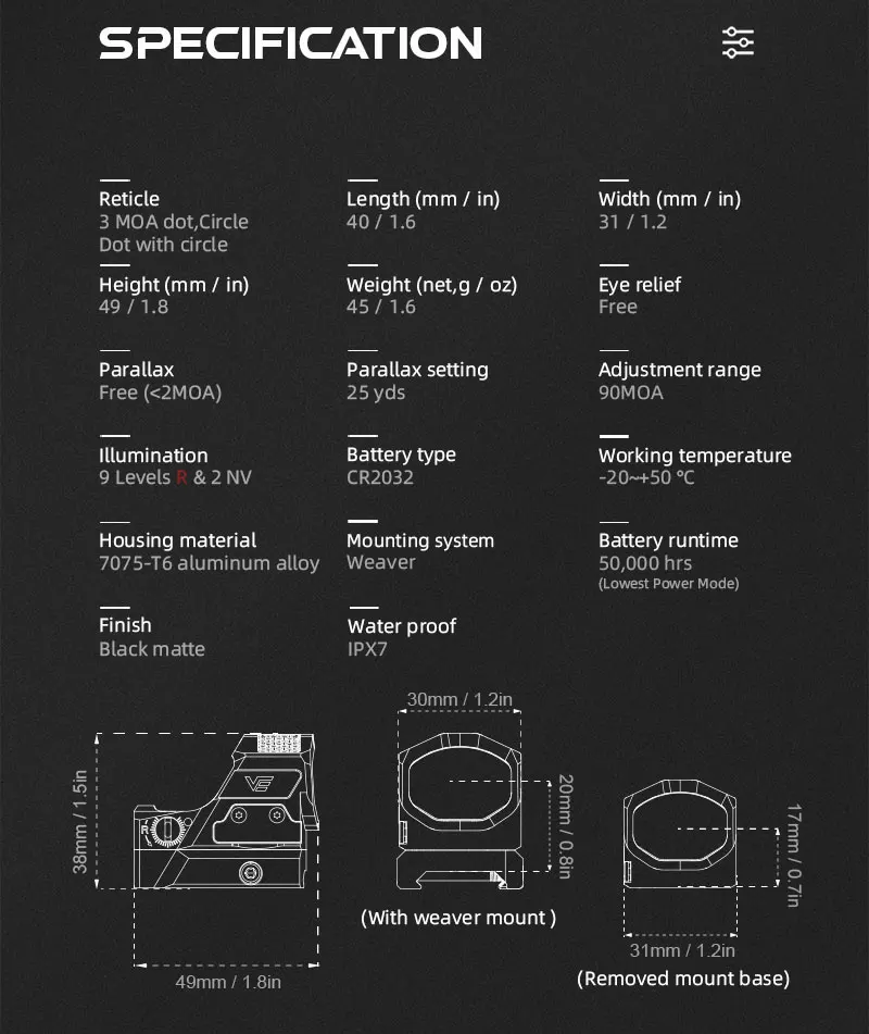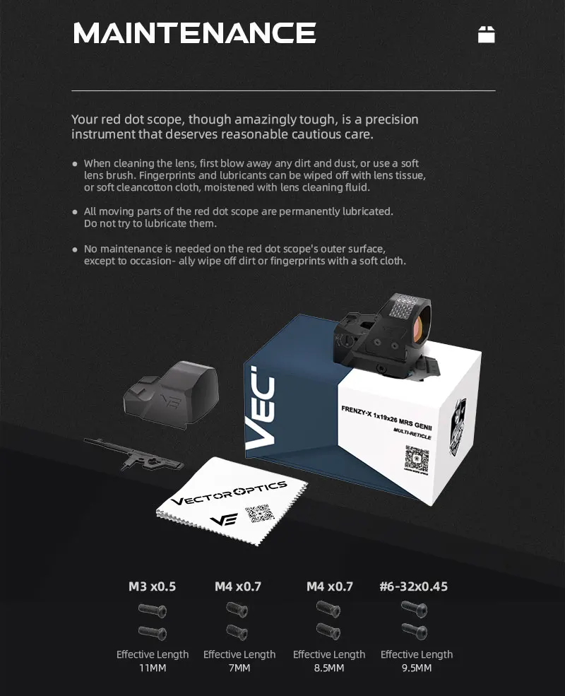 Artículos en el paquete: soporte Weaver, llave hexagonal, cubierta de lente de goma, manual de usuario, paño de limpieza, etc.
