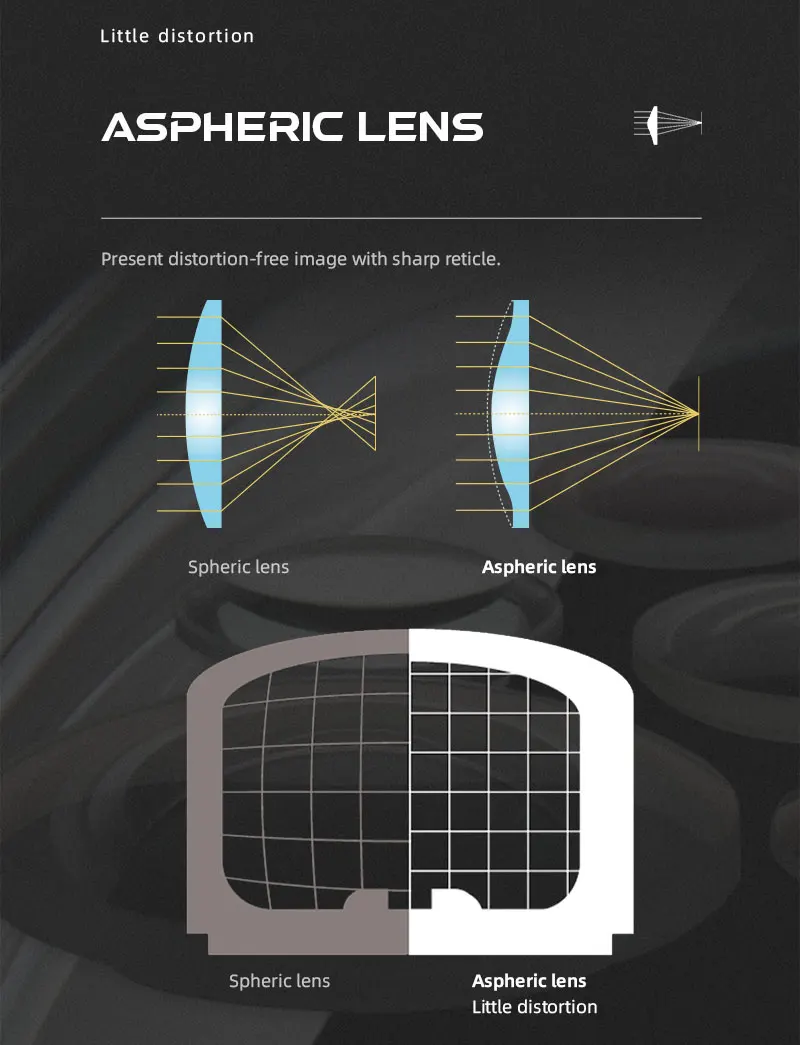 La lente asférica minimiza la aberración y no distorsiona la imagen, la carga lateral de la batería no perderá cero