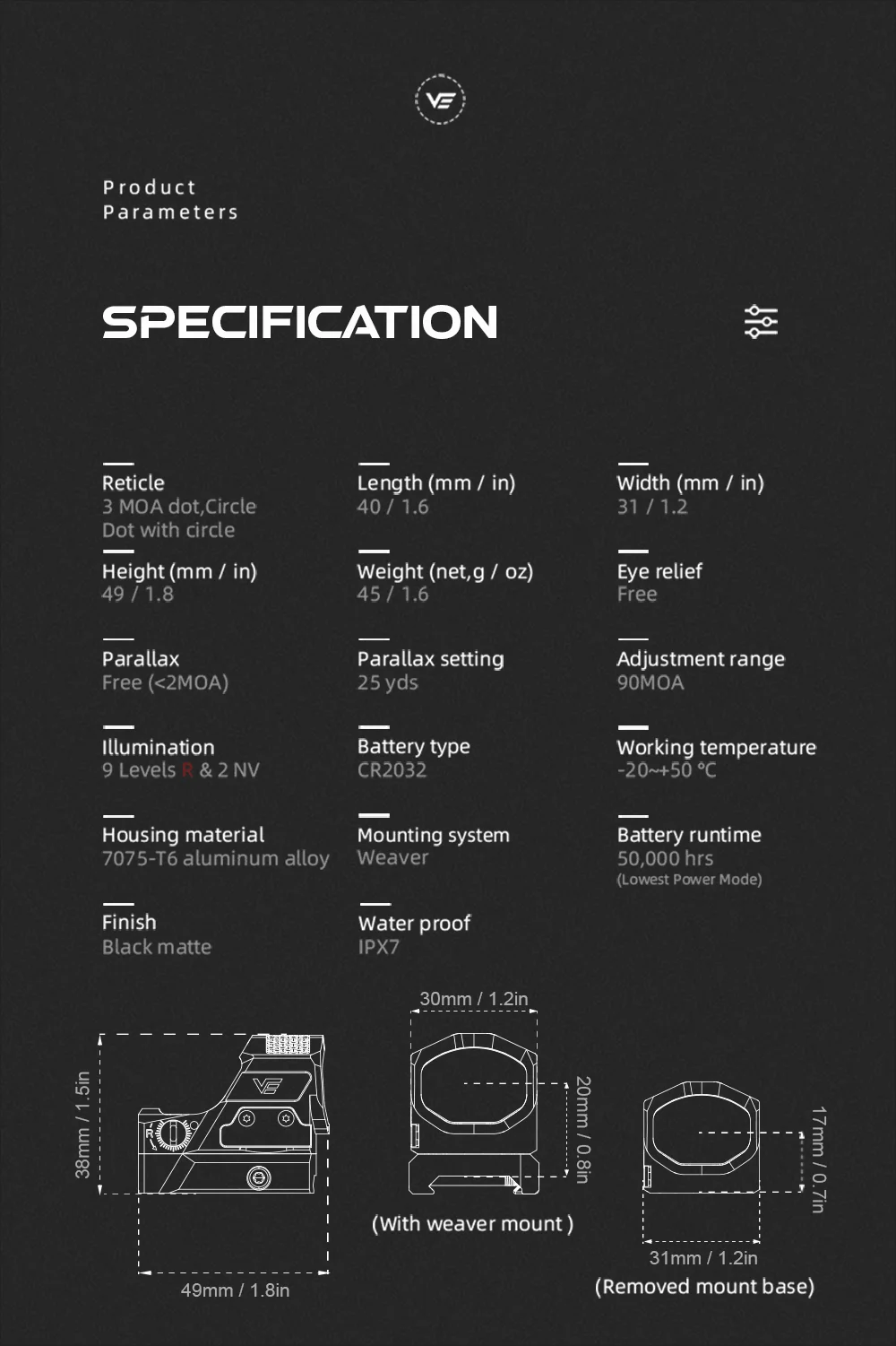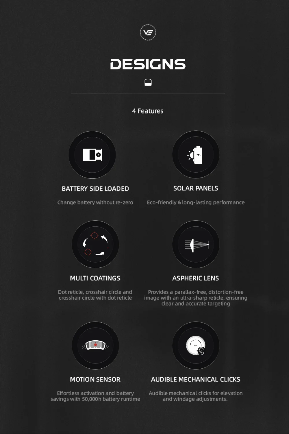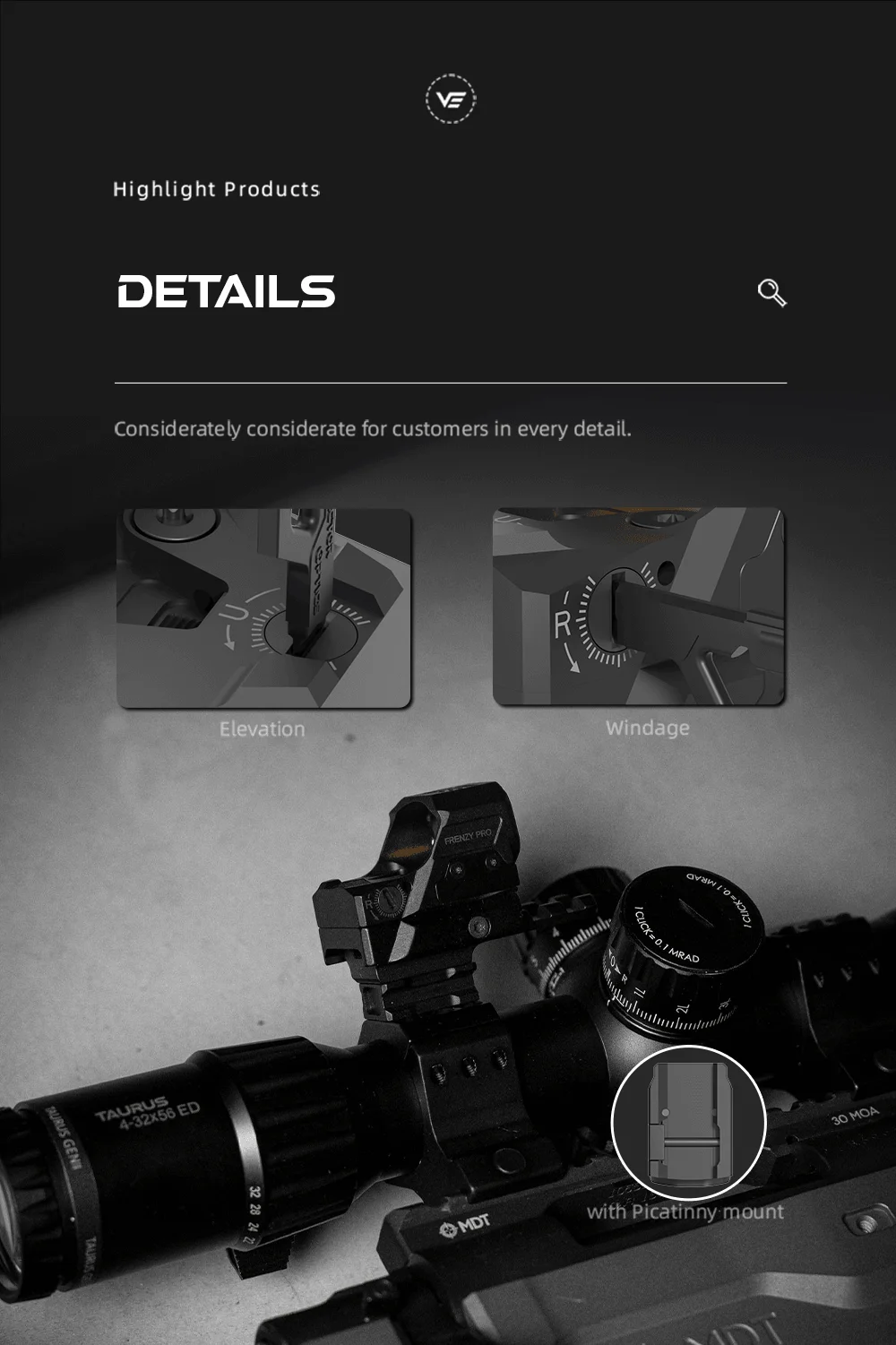 • 7075-T6 Aluminum Alloy Material, Lightweight and Compact, Durable Red Dot Sight