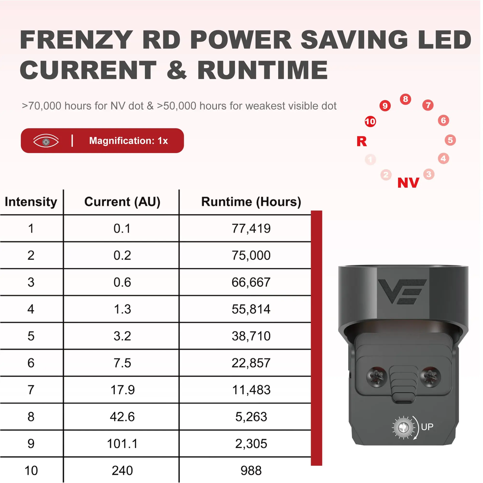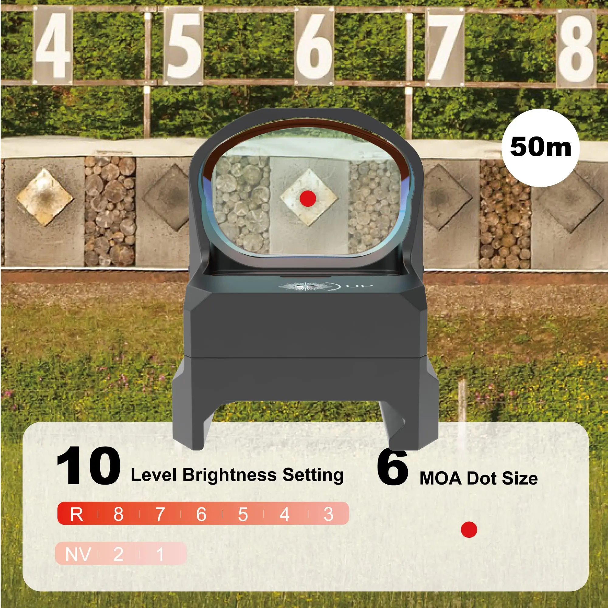 Funciona muy bien, muy brillante, no necesita volver a poner a cero. Está montado en 9 mm y .223 y funciona muy bien.