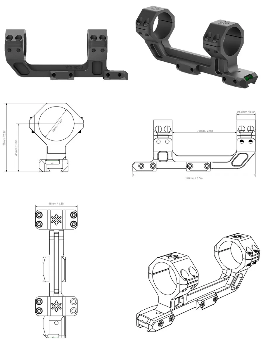 Se adapta a algunos soportes y anillos X-Accu One Piece con orificios para tornillos M4.