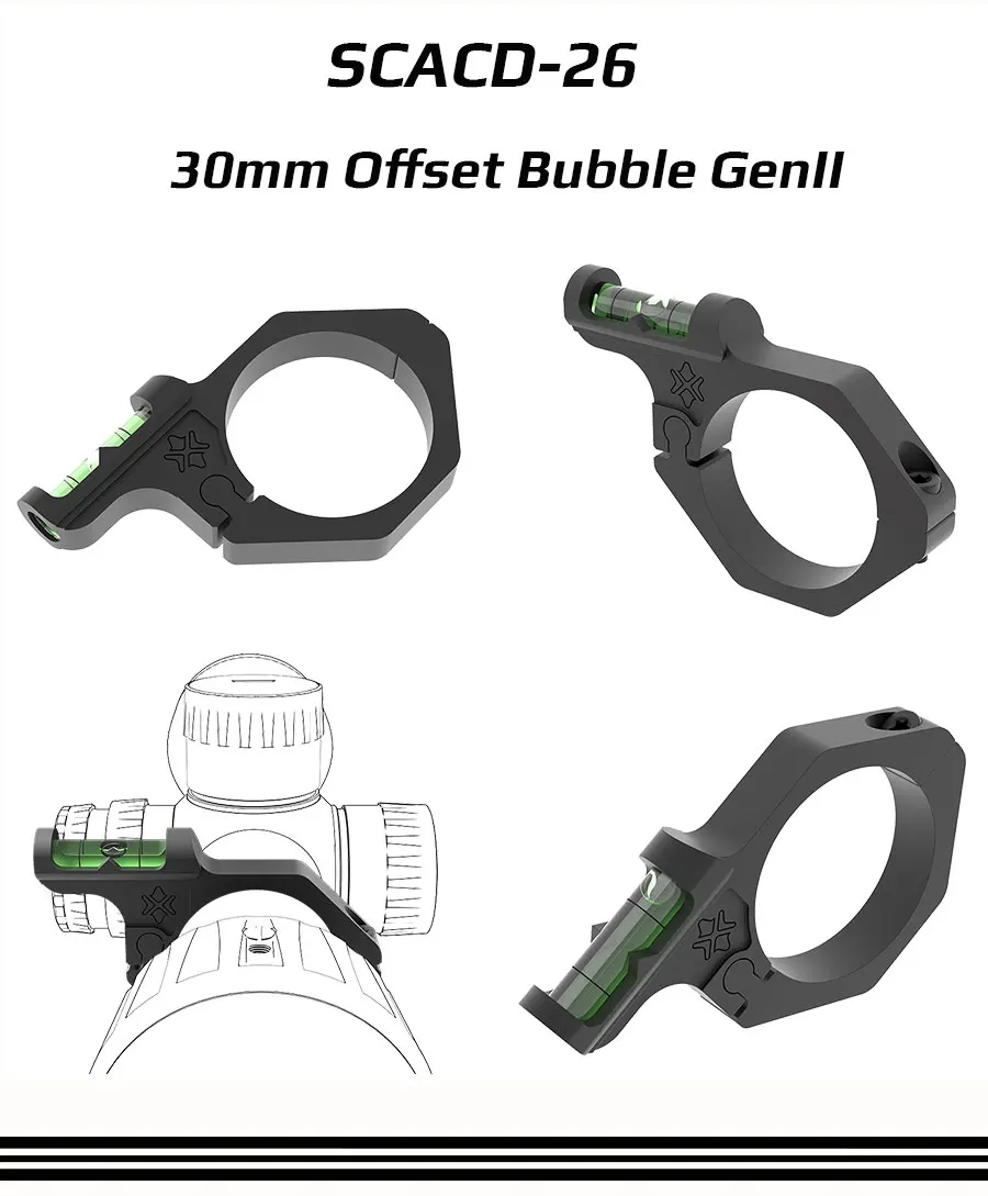 Se adapta a visores de rifle de 30 mm, nivel de burbuja desplazada de perfil delgado, 100% evita Cant