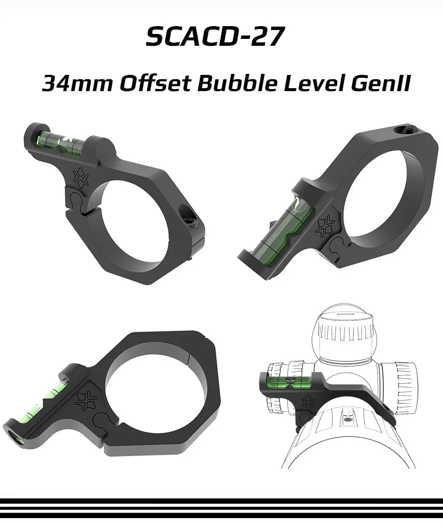 Nivel de burbuja con diseño de perfil delgado, se adapta a riflescopes de 34 mm sin agregar volumen