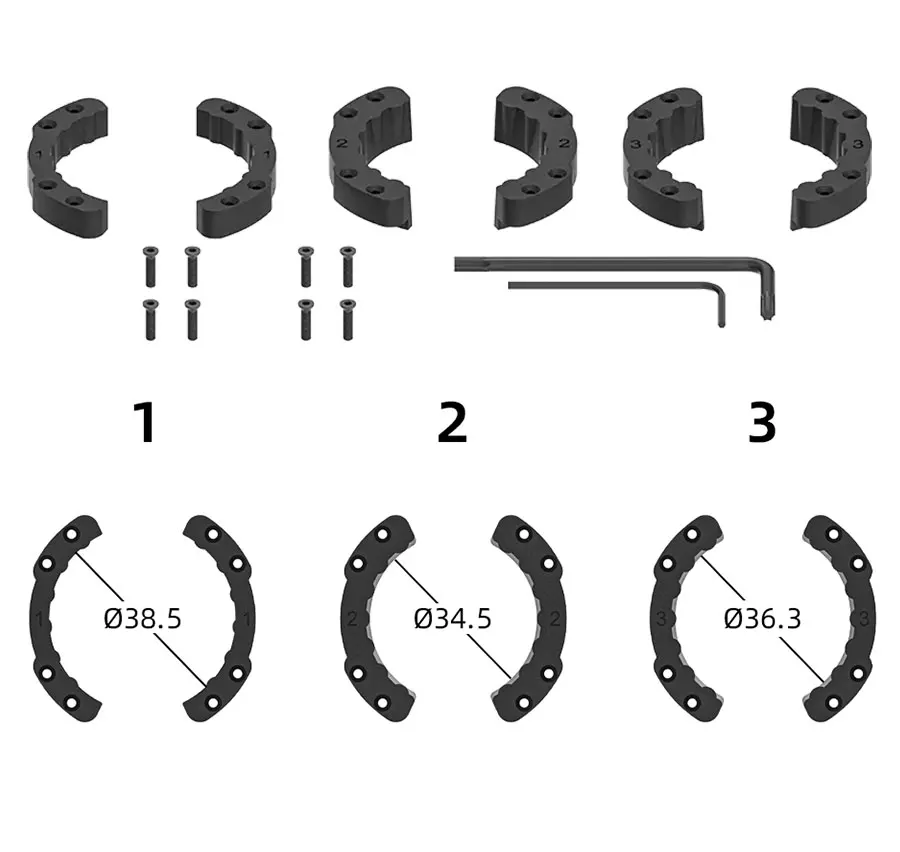 Artículos en el paquete: tres manguitos, llave Torx T10, llave hexagonal H2, etc.