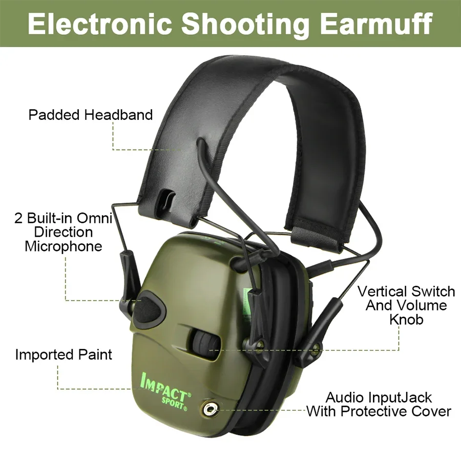 AMPLIFICACIÓN DEL SONIDO AMBIENTAL: nuestra protección auditiva para disparar está equipada con 2 micrófonos omnidireccionales y un chip avanzado, por lo que puede amplificar claramente los sonidos circundantes de bajo nivel hasta 4X. Proporciona una escucha más natural y una comunicación mejorada. Esta es la primera opción para la mayoría de los entusiastas del tiro si estás cansado de quitarte los tapones para los oídos cuando alguien te habla en el campo de tiro