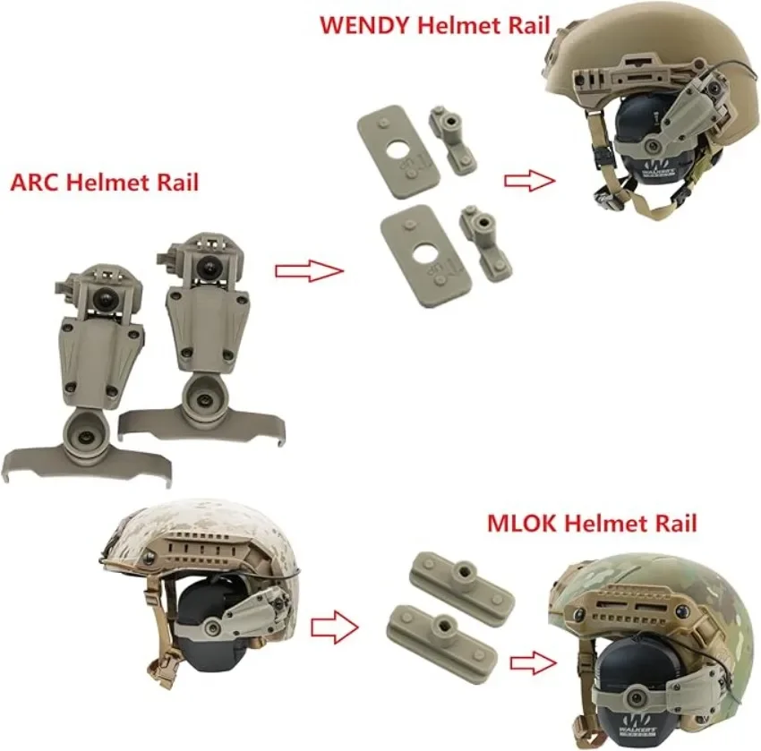 Los adaptadores ARC Rail son compatibles con toda la línea de cascos Ops-Core FAST, cascos ACH, cascos MICH y otros cascos con rieles ARC en los laterales, etc.