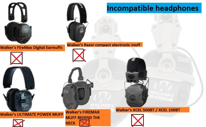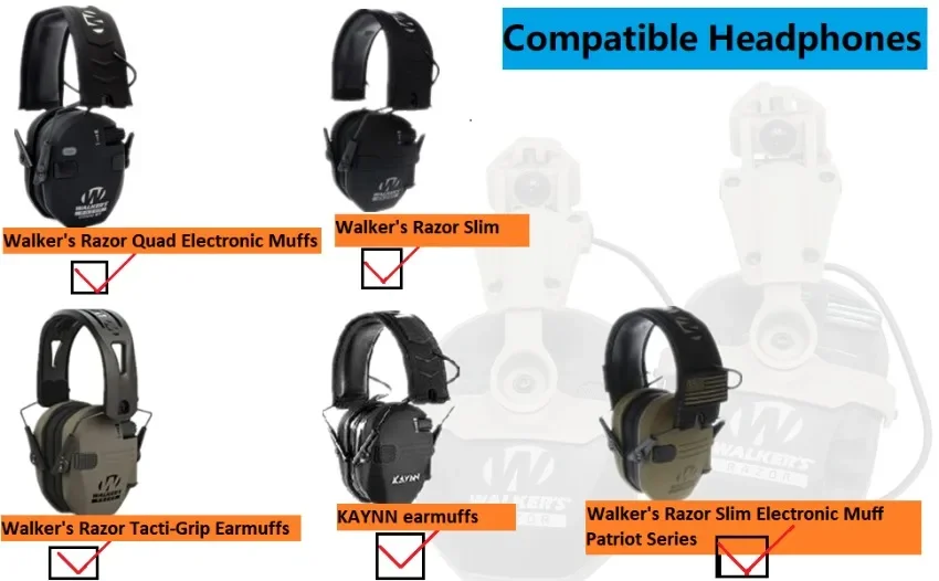 Compatible con orejeras Walker's Razor (Walkers Razor, Walers Razor Digital) Orejeras tácticas electrónicas para tiro