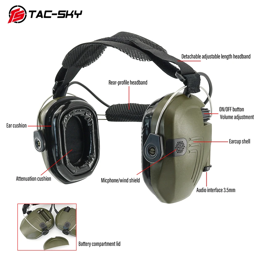 Orejeras electrónicas para tiro TAC-SKY IPSC, protección auditiva, cancelación de ruido para auriculares tácticos de tiro Airsoft