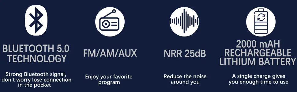 Ya No te preocupes por las caídas repentinas de música. La tecnología Bluetooth 5,0 mejorada proporciona una conexión Bluetooth rápida y estable y te permite transmitir entretenimiento sin problemas desde tus teléfonos, tabletas u otros dispositivos con Bluetooth. El botón multifuncional y el micrófono integrado te permiten hacer llamadas fácilmente sin quitar la orejera. Además, los altavoces Hi-Fi le brindarán una experiencia musical brillante sin comprometer la protección auditiva