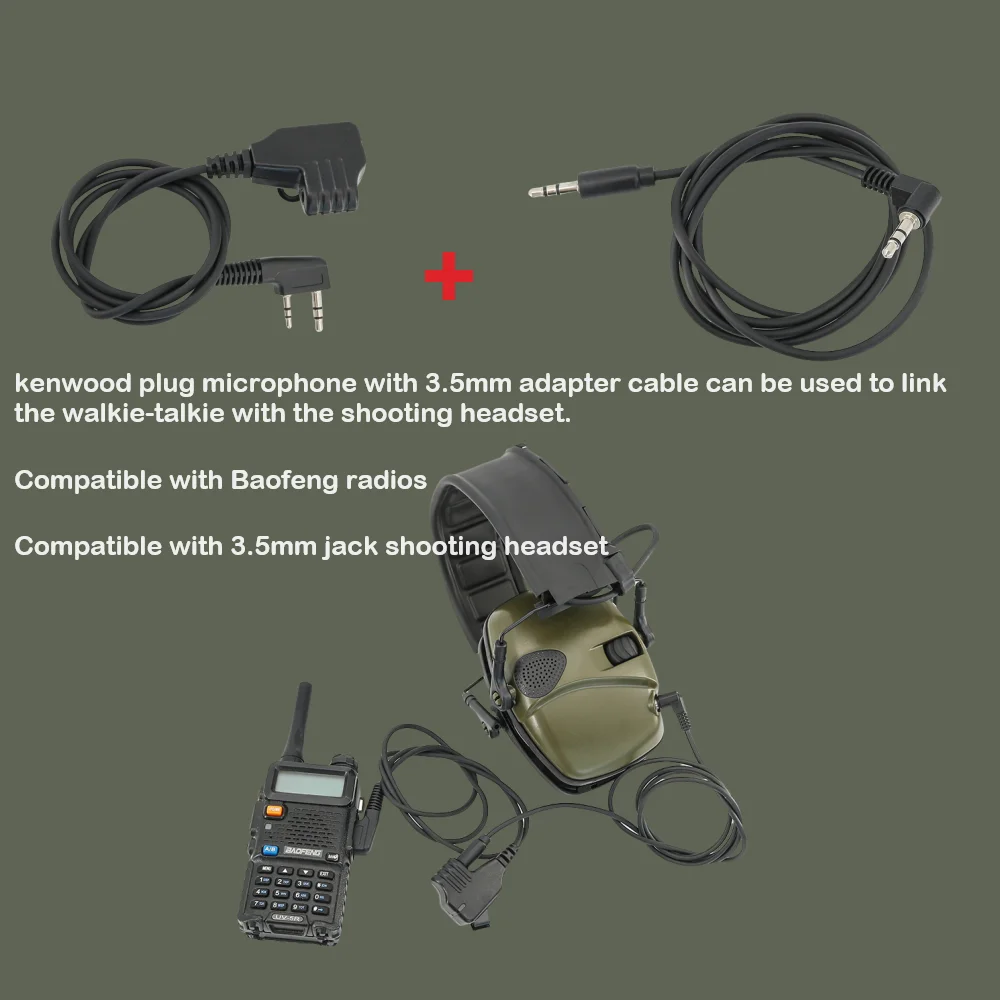 Orejeras de tiro electrónicas tácticas, protección auditiva al aire libre, adaptador de auriculares de caza, Compatible con walkie-talkie Baofeng