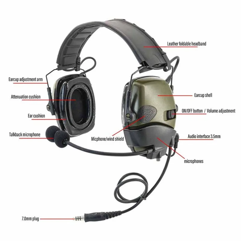 Orejeras de tiro con protección auditiva con micrófono externo NRR 23dB, reducción activa de ruido, auriculares tácticos de caza