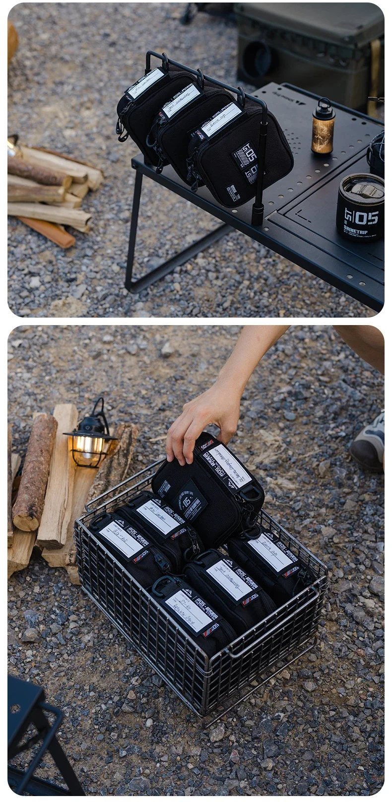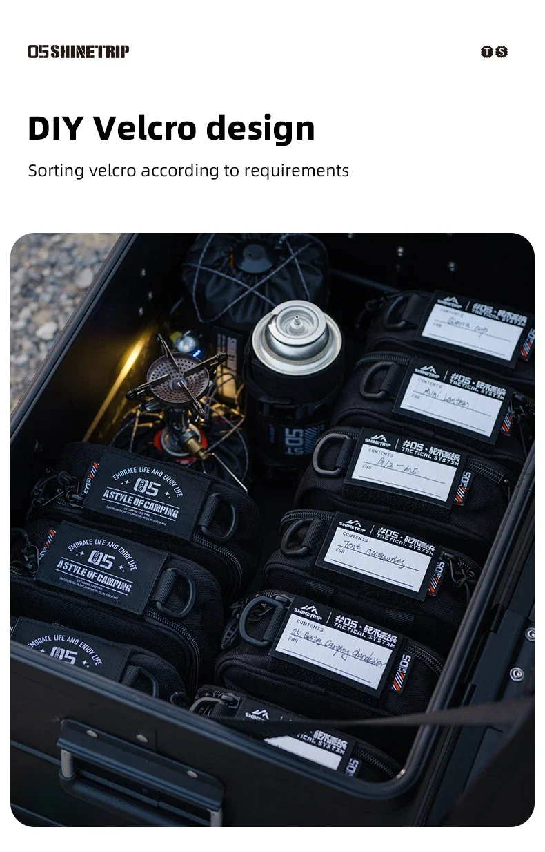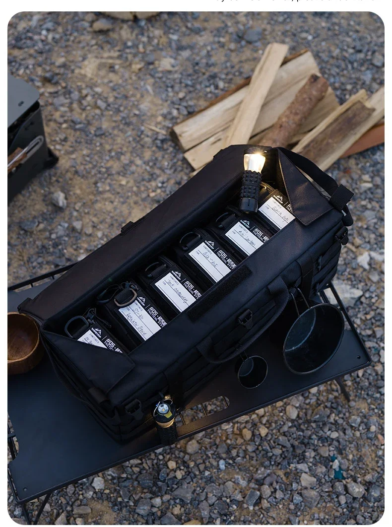 Organizador para acampar al aire libre, bolsa de almacenamiento Molle para acampar, bolsa de almacenamiento multifuncional impermeable con parche de gancho y bucles escrito a mano