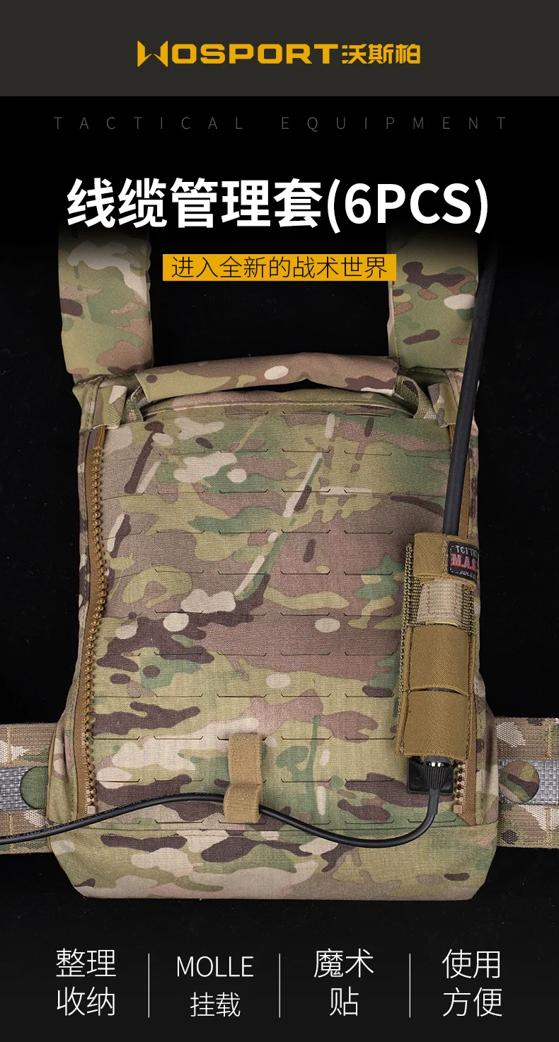 Organizador de accesorios Molle táctico para exteriores, funda para gestión de cables, cinturón, soporte de gancho y bucle, 6 piezas