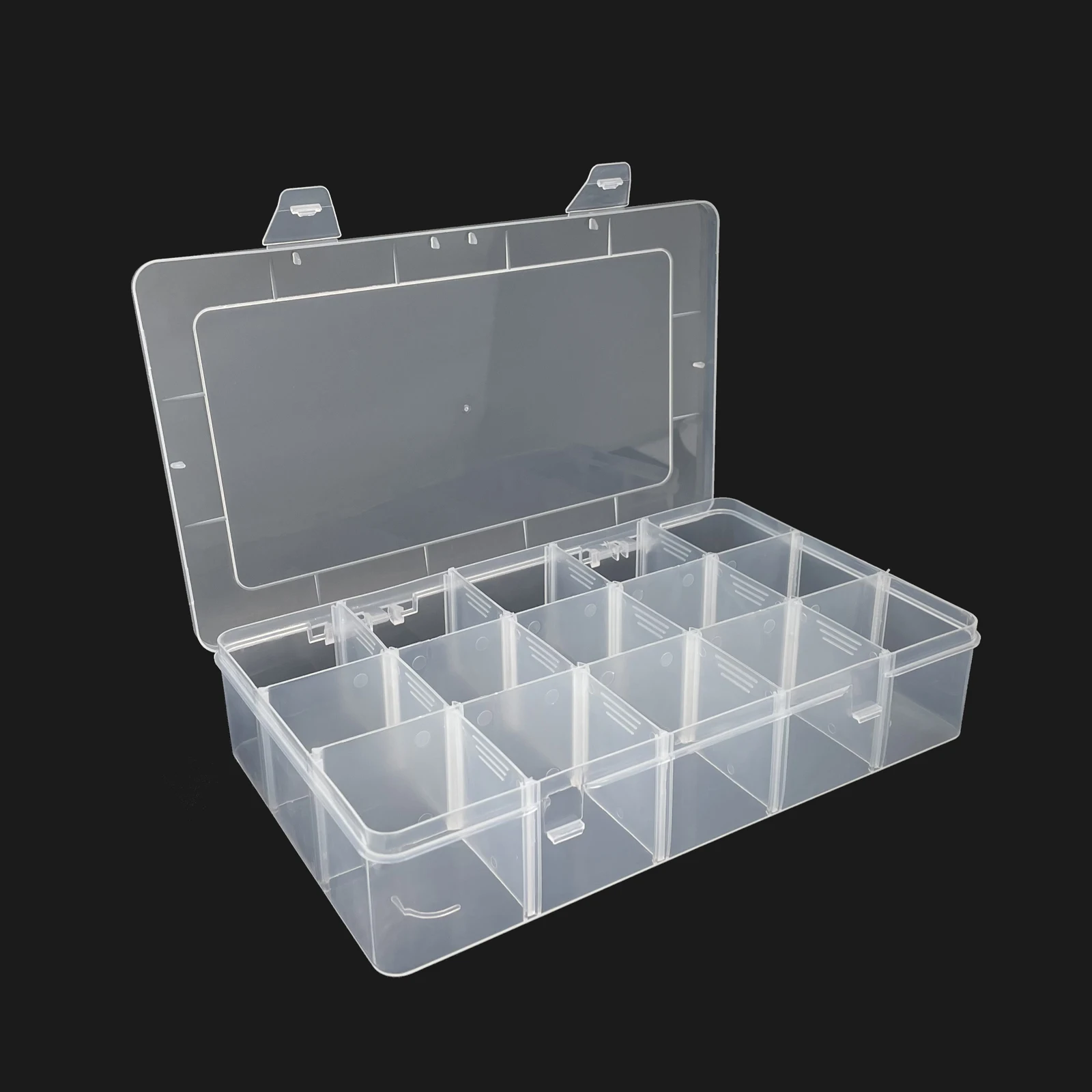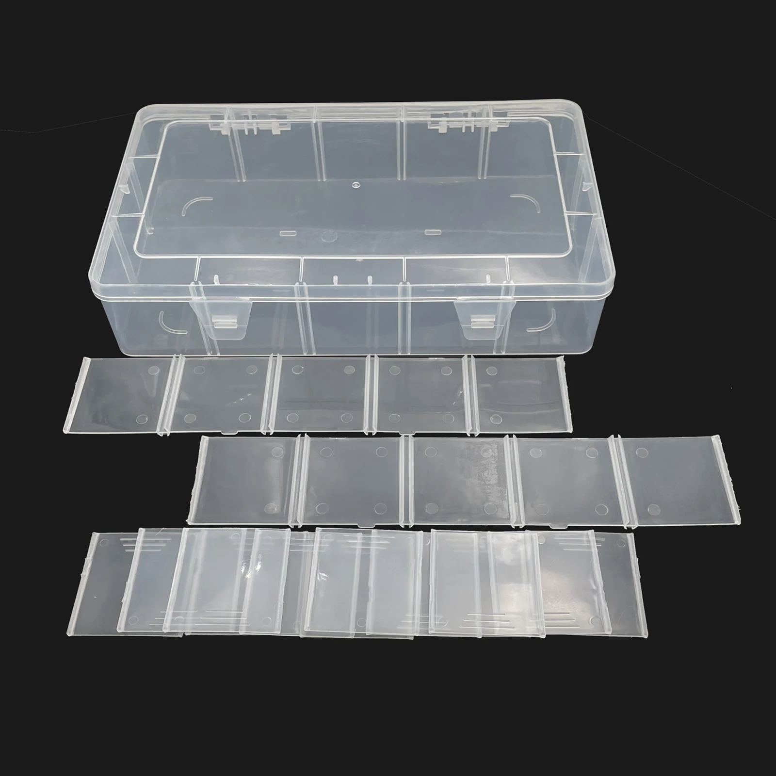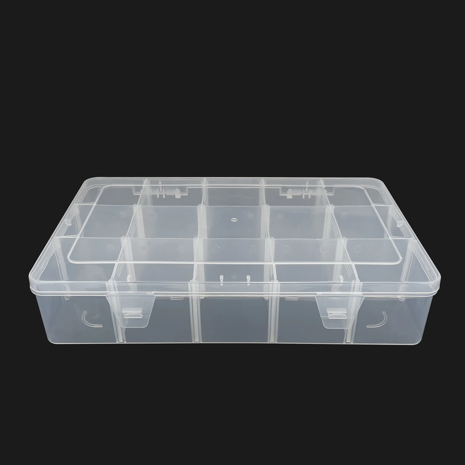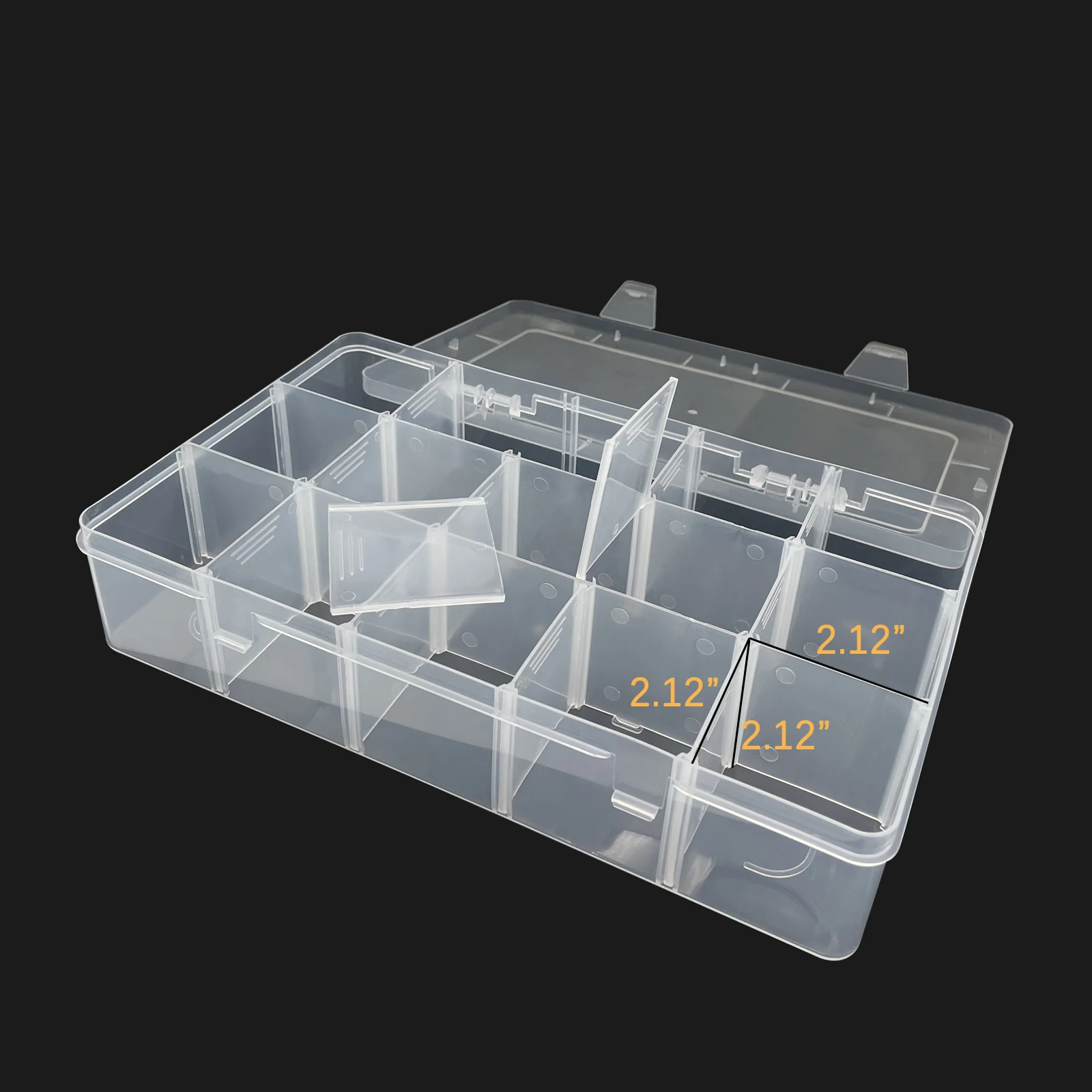 Viene con un gran estuche organizador de almacenamiento transparente de 15 rejillas con divisores ajustables.