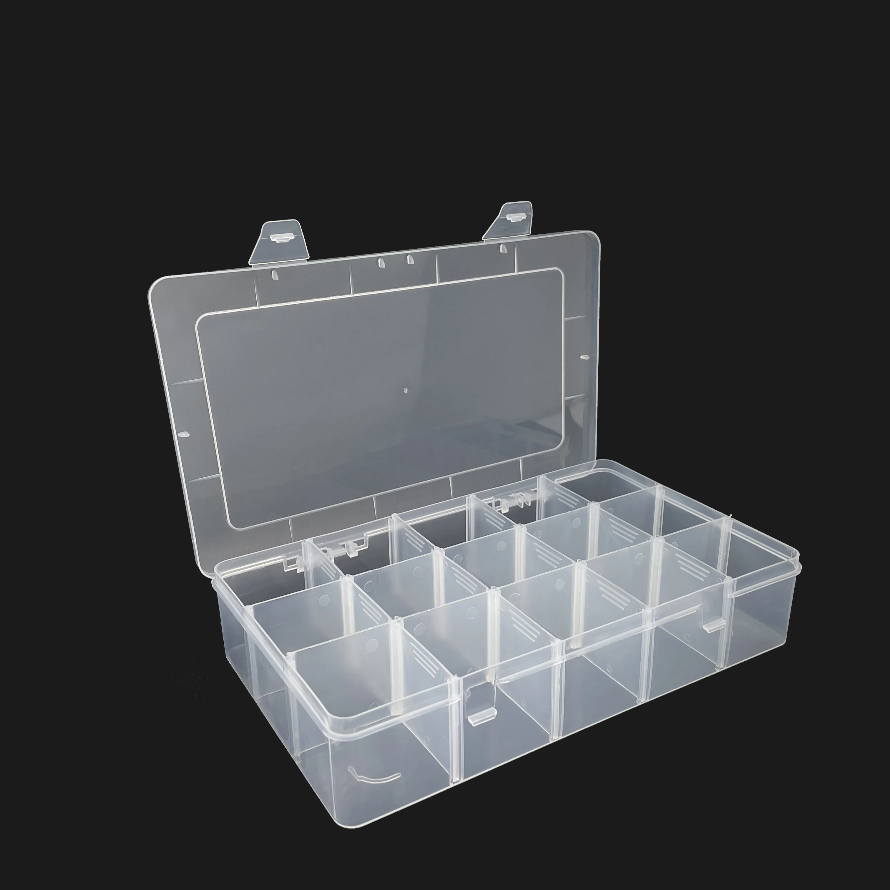 Viene con un gran estuche organizador de almacenamiento transparente de 15 rejillas con divisores ajustables.