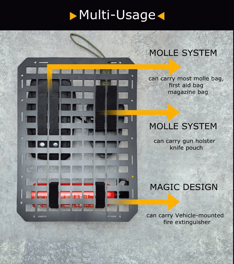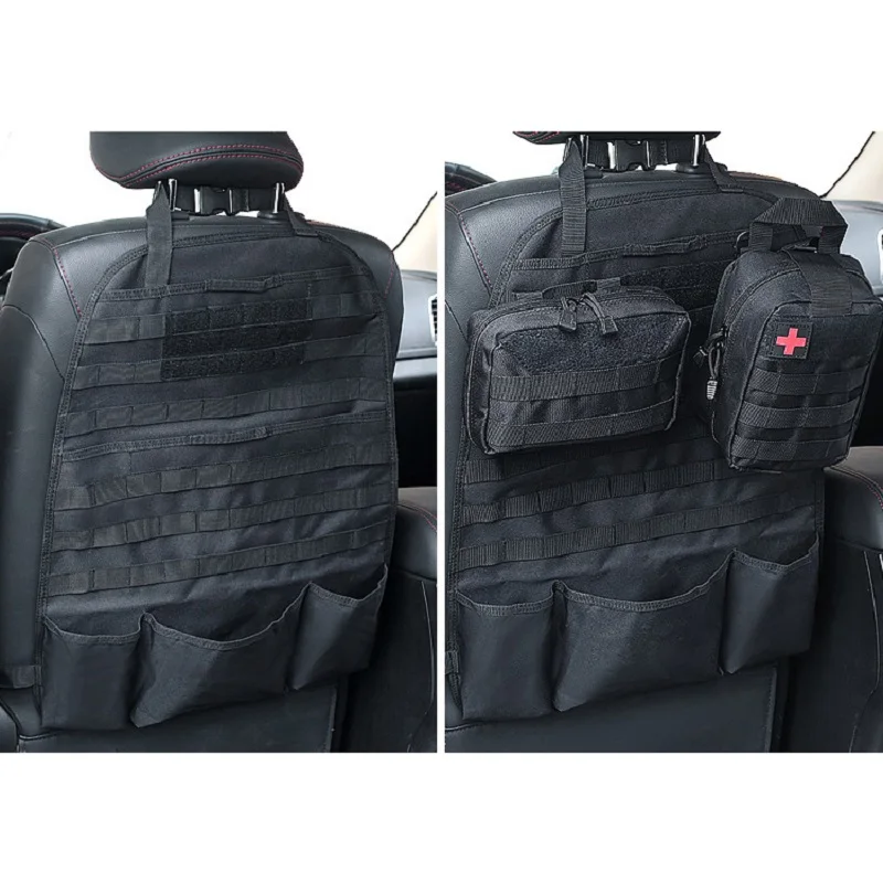 -Nombre: organizador táctico del respaldo del asiento del coche -Modelo: nuevo estilo y estilo antiguo -Material: tela impermeable -Color: negro, marrón, verde -Tamaño: NUEVO ESTILO: 58x44cm