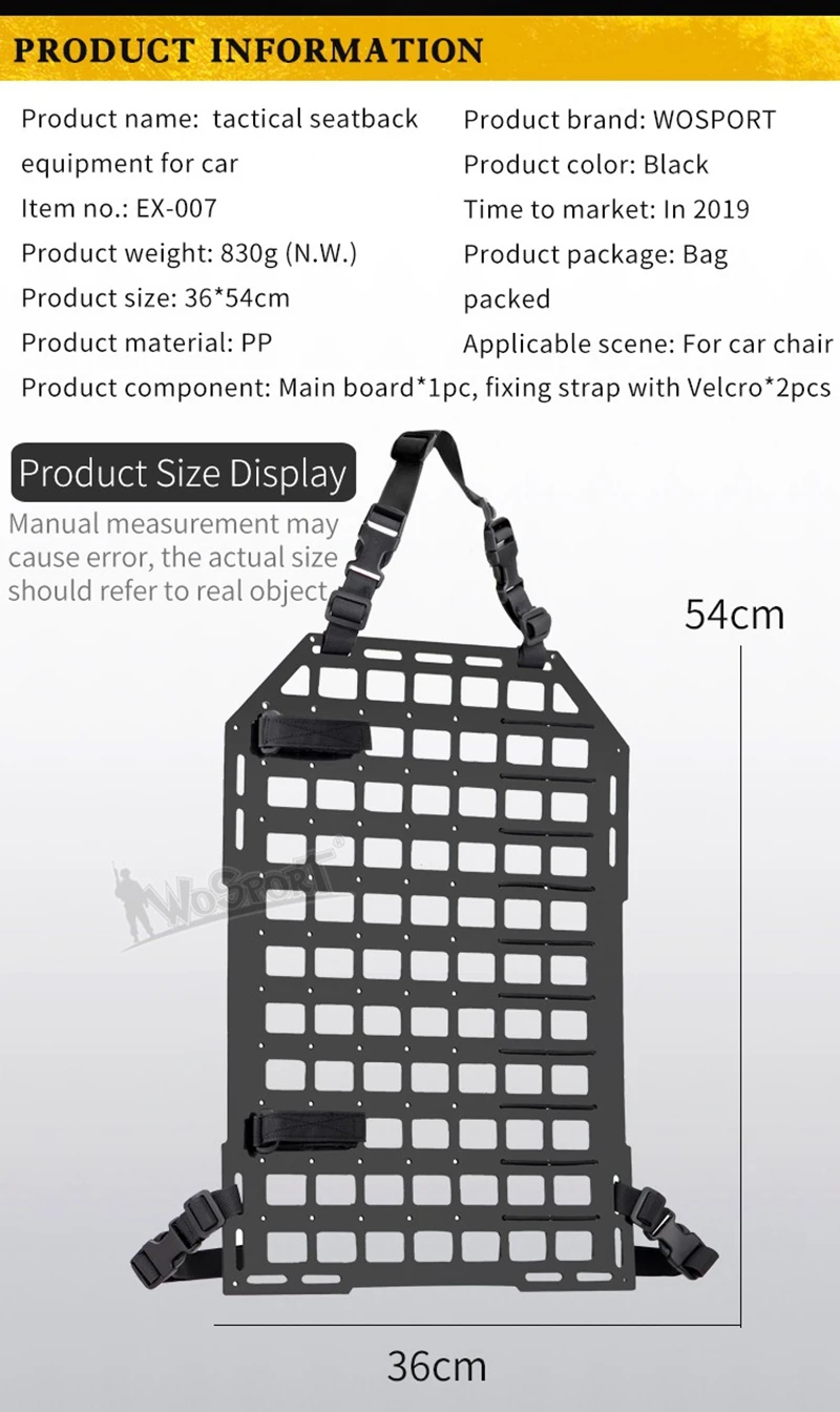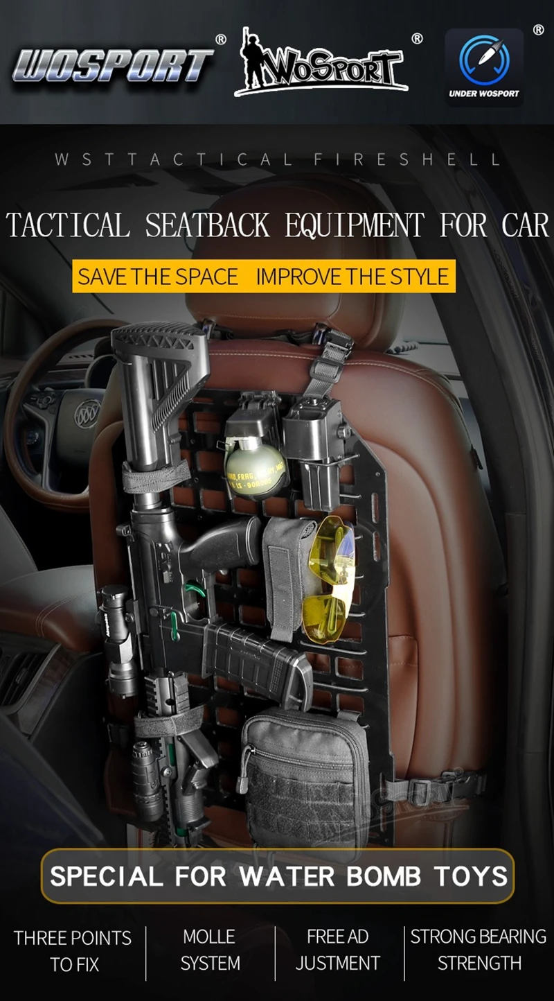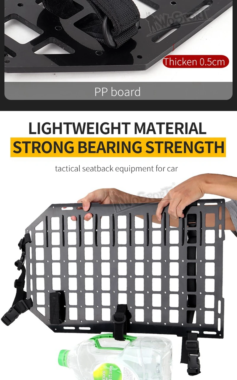 Organizador de asiento trasero de coche táctico Molle Panel para vehículos Universal de coche asiento trasero Protector de cubierta para Airsoft Paintball juego