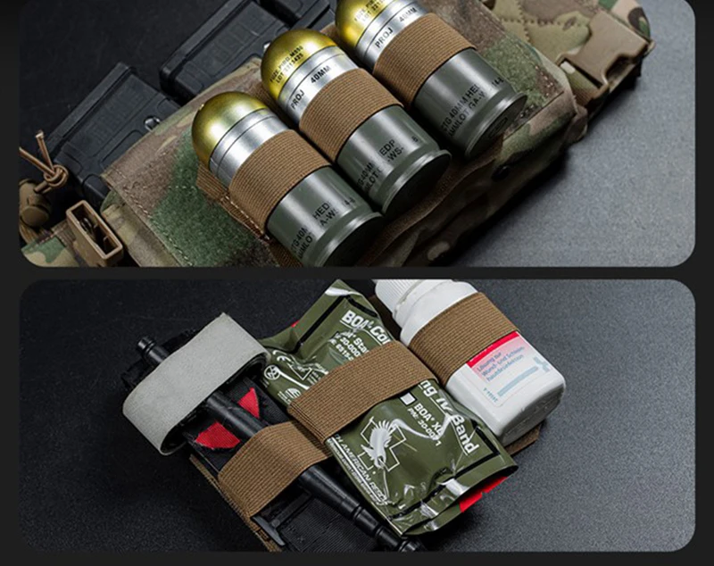 Puede cargar 6 balas/3 lazos elásticos para el organizador.