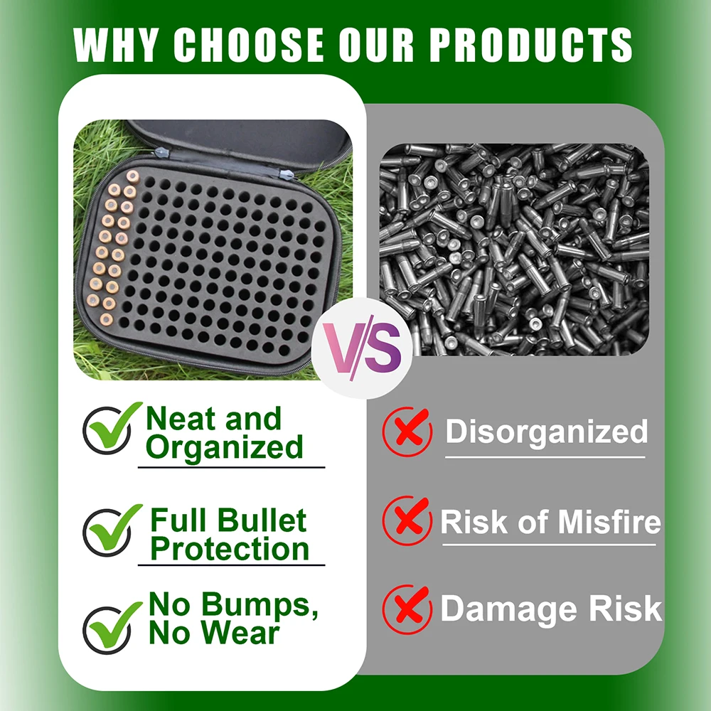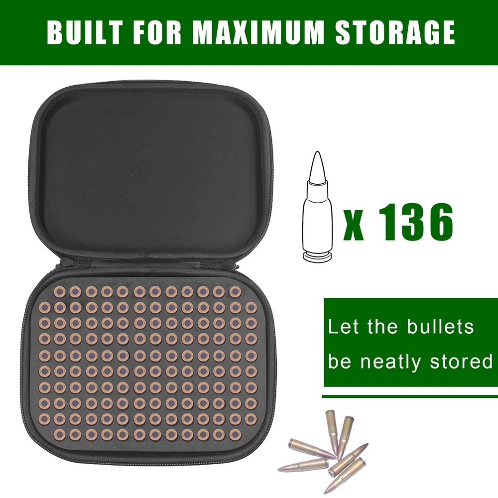 1. 【Capacidad espaciosa】 Mantenga hasta 136 rondas con el inserto de espuma EVA para munición. Una capa de espuma en el interior asegura que la munición nunca se toque entre sí, brindando protección y organización adicionales a su munición.