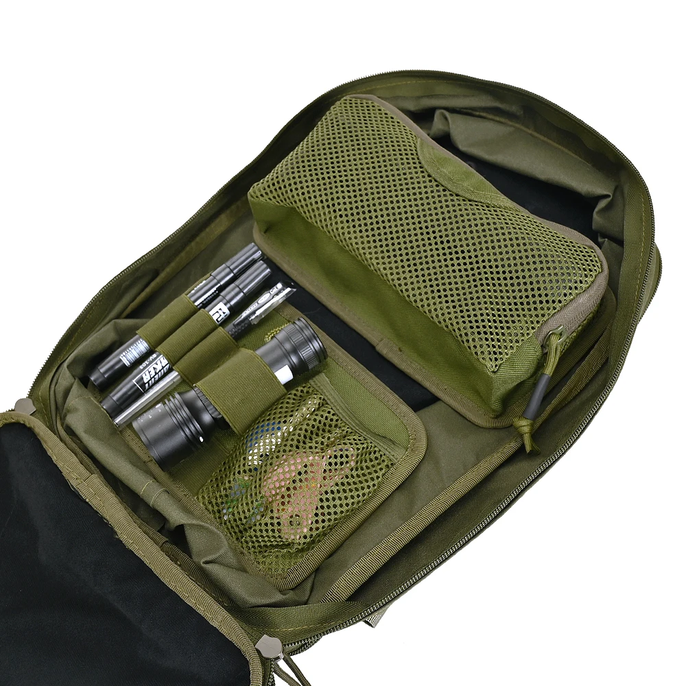 1 Exceso fácil y rápido al compartimento principal que puede almacenar linterna u otros dispositivos pequeños, como bolígrafo táctico, linterna, llavero, etc.
