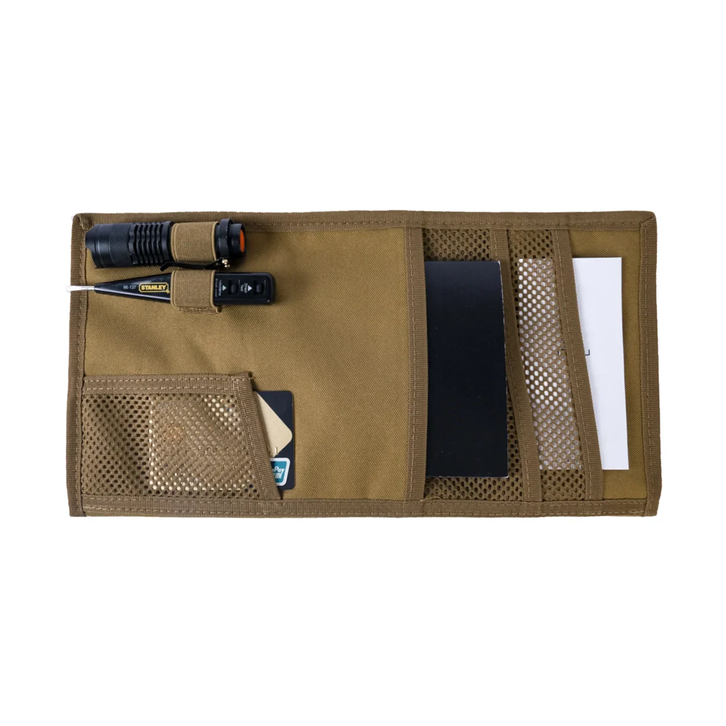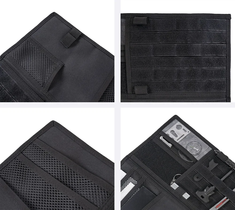 Este panel de visera Molle está diseñado para mantener artículos pequeños al alcance de la mano.