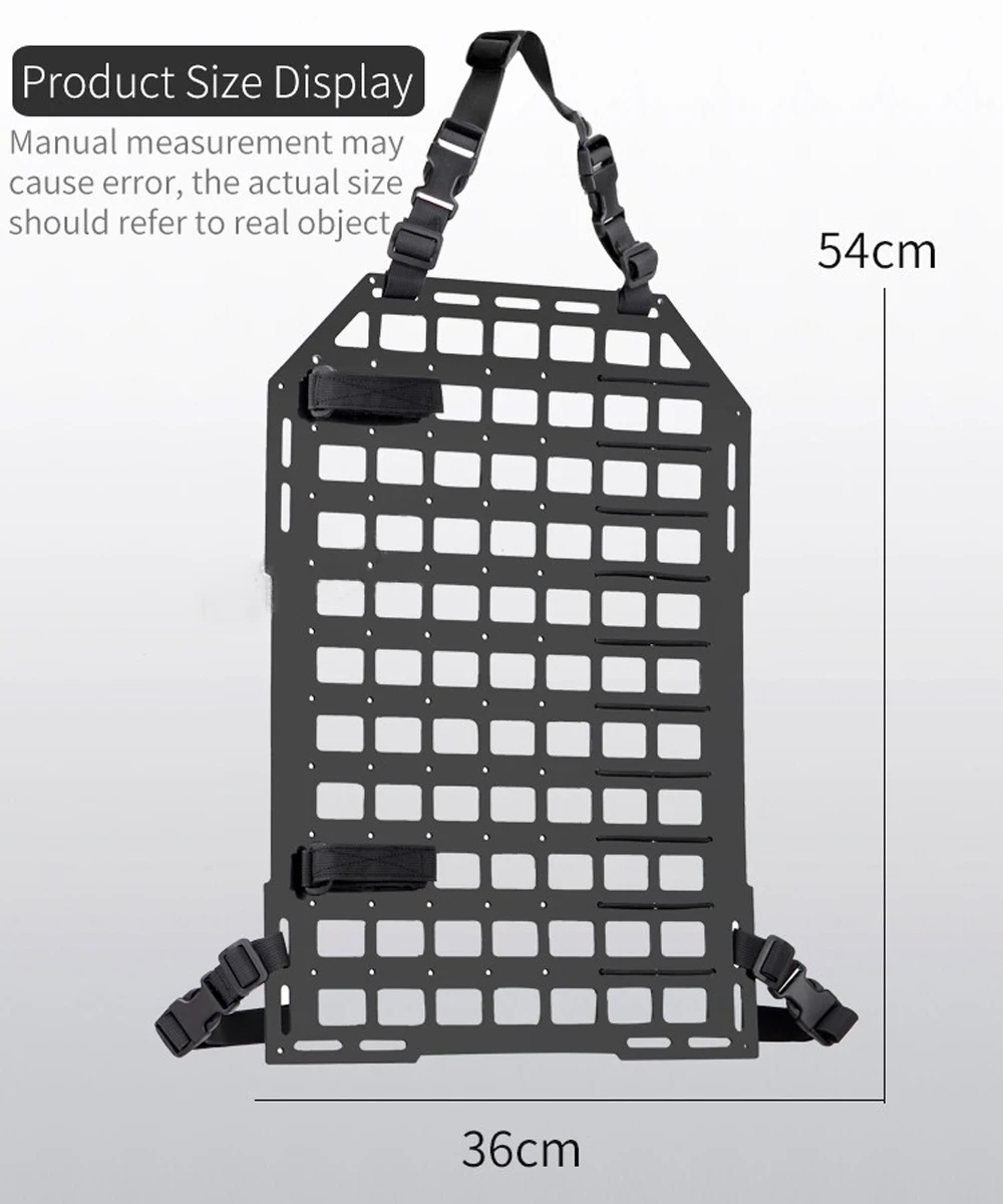 Organizador táctico del asiento trasero del coche, tablero de PP, sistema MOLLE, caza al aire libre, tiro, Airsoft, soporte de almacenamiento portátil para el respaldo del asiento del vehículo