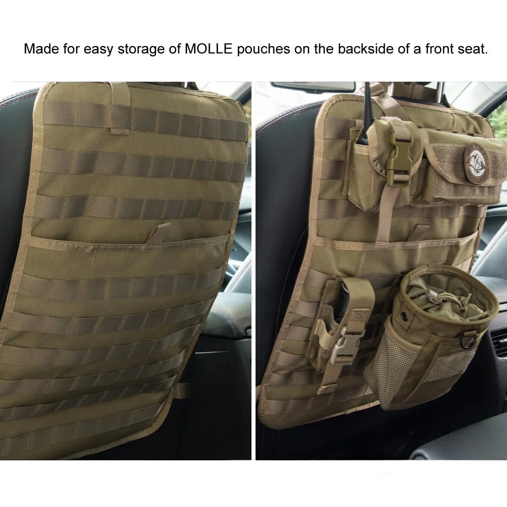 MOLLE táctico para asiento de coche, organizador trasero para Panel de vehículo, Protector de cubierta de asiento de coche, bolsa de caza de nailon de ajuste Universal