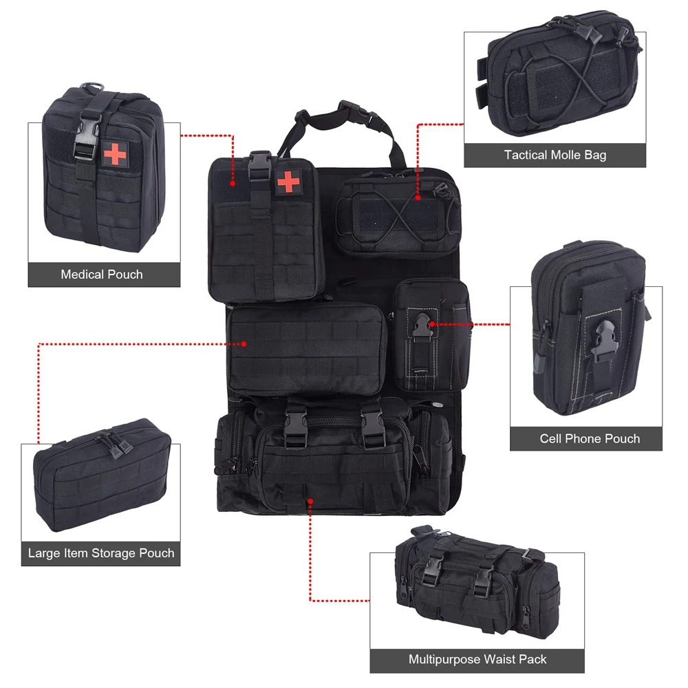 Organizador táctico para respaldo de asiento, bolsa de almacenamiento con 5 bolsas Molle, Panel Molle para vehículo, ajuste Universal para todos los vehículos