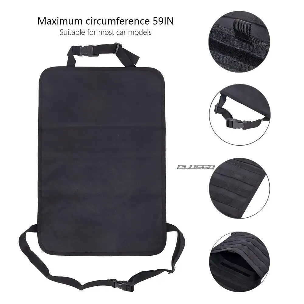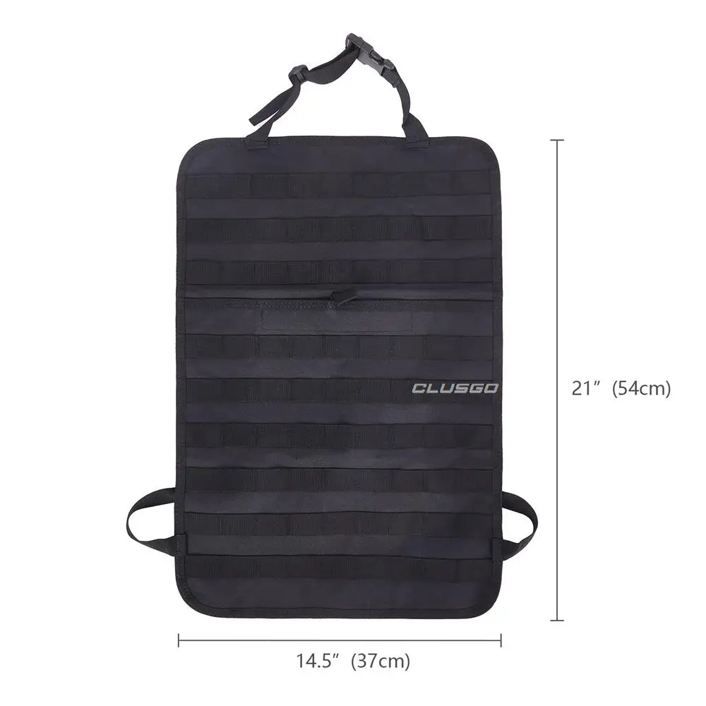 Adecuado para la mayoría de los modelos de automóviles: organizador de respaldo de asiento MOLLE con tamaño de bolsas: 21*14,5 pulgadas. La circunferencia máxima de la correa fija es de 59 pulgadas. Adecuado para la mayoría de los asientos traseros de vehículos, SUV, camiones, camionetas, etc.
