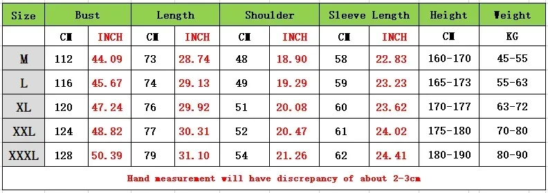1.Esta tabla de tallas es solo para su referencia.Permita un error de 1-3 cm en la medición manual.