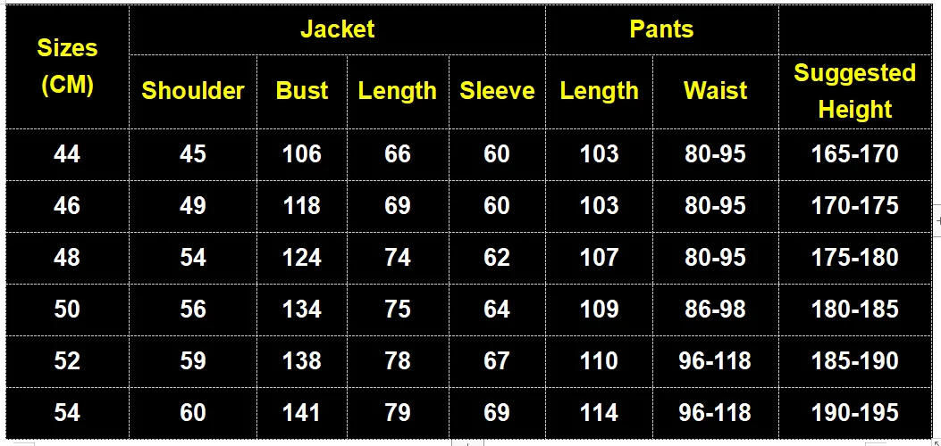 Tamaño: S(44), M(46), L(48), XL(50), XXL(52), 3XL(54), 4XL(56)