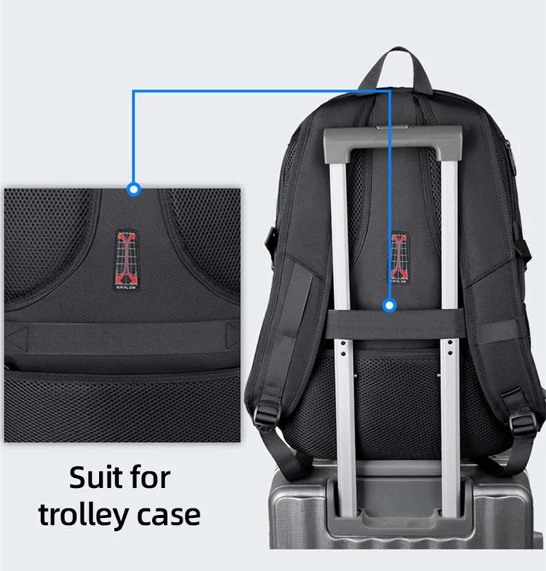2.USB charging design, backpack set charging port, internal connection charging treasure, external connection charging socket, out of the convenient electronic products charging