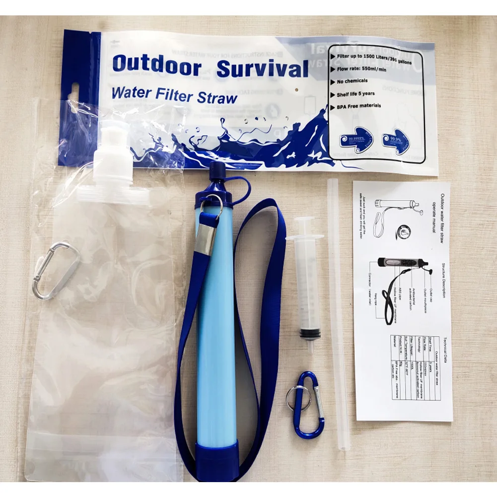 El dispositivo de purificación de agua de emergencia es una herramienta indispensable para caminatas, caza, campamentos, montañismo, caminatas, ciclismo, paseos en bote, equitación, mochileros, viajes nacionales y extranjeros, exploración de campo o situaciones de emergencia. Puedes llevarlo al aire libre y beber agua potable segura fácilmente.