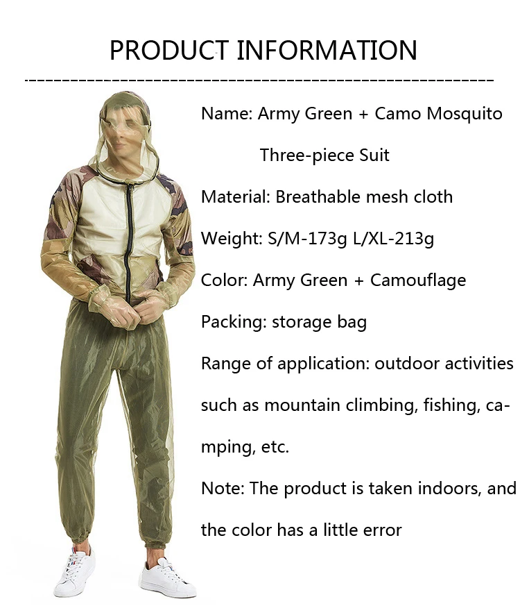 Chaqueta antimosquitos (incluido el casco) /pantalones antimosquitos /pies antimosquitos