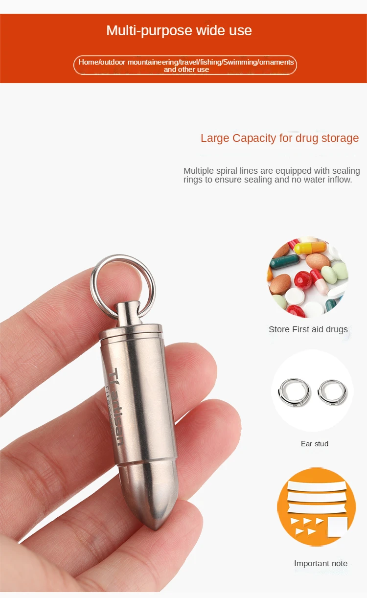 Outdoor Pure Titanium Portable Waterproof Sealed Warehouse Camping Moisture-proof Small Medicine Box Storage Tank