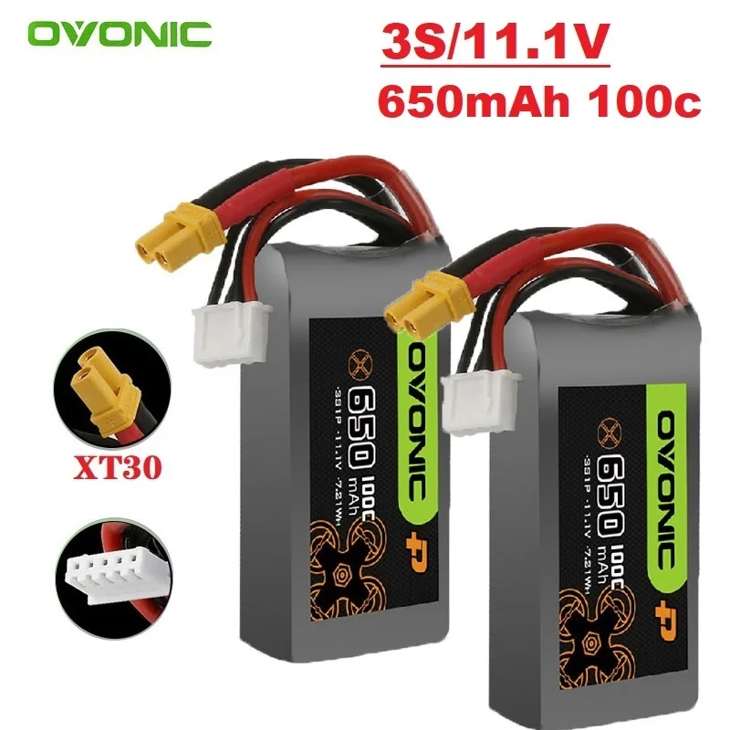 OVONIC-batería Lipo 3S1P de 11,1 V, 650mAh, 100C, enchufe XT30 para helicóptero RC, Quadcopter, FPV, piezas de Dron de carreras, batería de Drones 3S