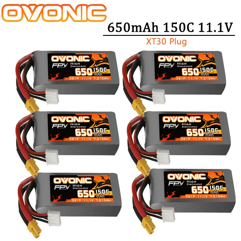 OVONIC-batería Lipo con enchufe XT30 para Dron de carreras, 1-6 piezas, 650mAh, 150C, 11,1 V, para helicóptero RC, cuadricóptero, FPV