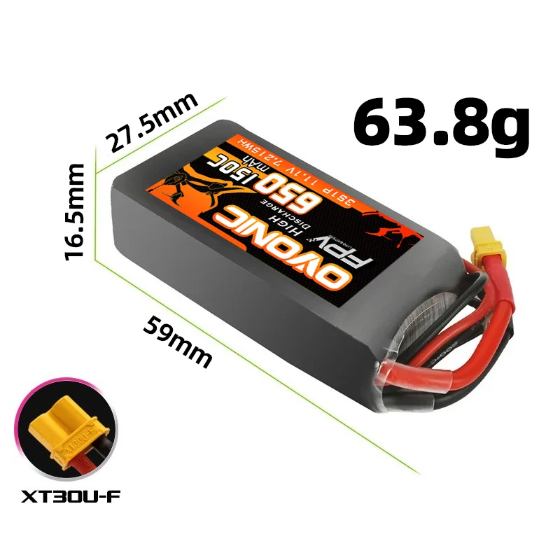 La batería llegó a tiempo y bien empaquetada. Hmm... dice que tiene una tasa de descarga de 150C, eso es interesante. Me gusta que sea una batería más pequeña que otras de 650 mAh.