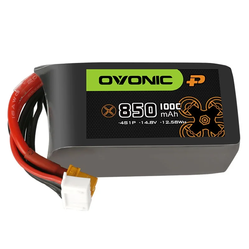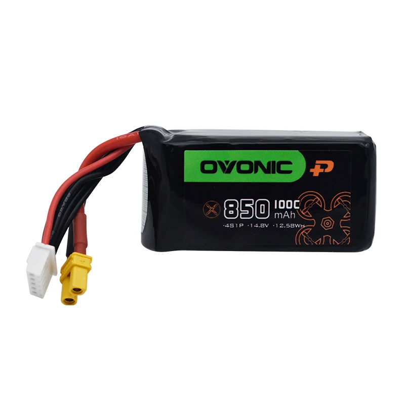 OVONIC-batería Lipo con enchufe XT30/XT60 para helicóptero RC, cuadricóptero FPV, piezas de Dron de carreras, 100C, 850mAh, 14,8 V, 4S