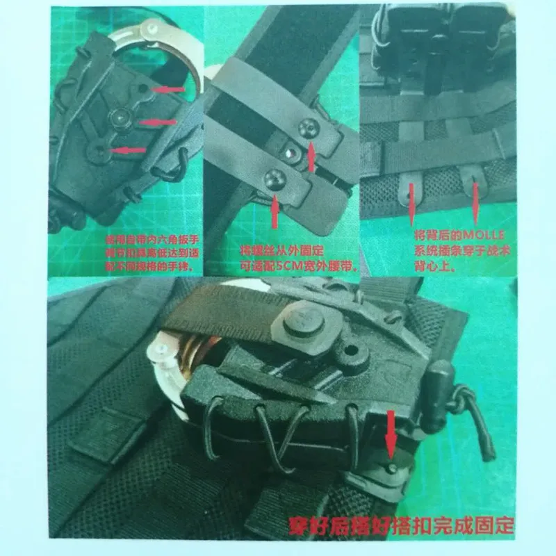 PA66 Bolsa táctica de nailon para esposas Molle, funda para puños de módulo, chaleco con bolsillos rápidos en la cintura