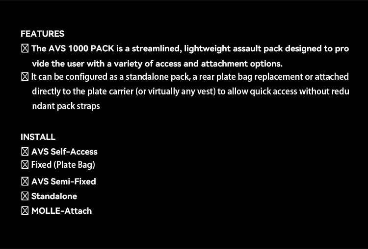 Pack de asalto modular AVS 1000 - Sistema de panel trasero integrado con chaleco