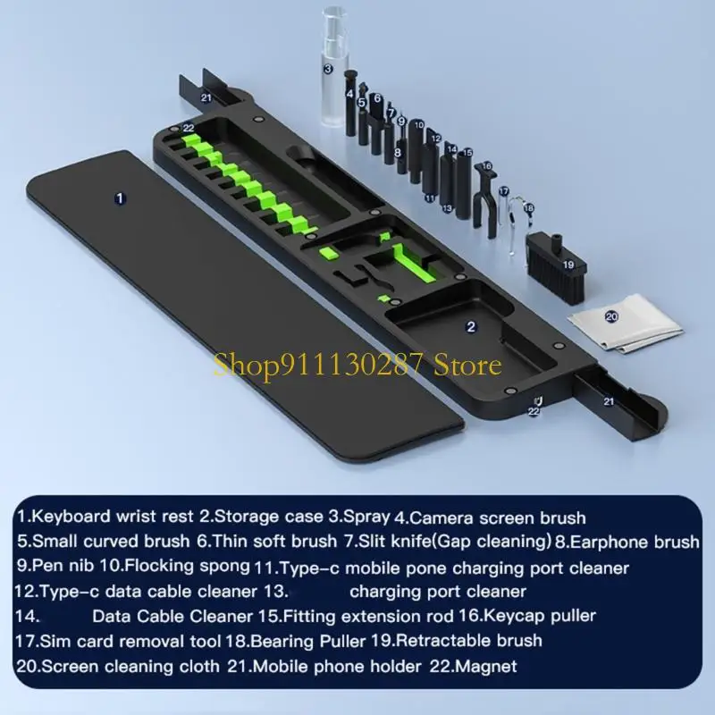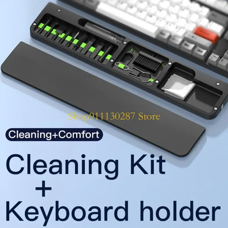 Optimiza la limpieza de los espacios de trabajo en oficinas domésticas o configuraciones de juegos al almacenar herramientas de limpieza mientras apoya las muñecas durante las actividades de escritura, codificación o transmisión.