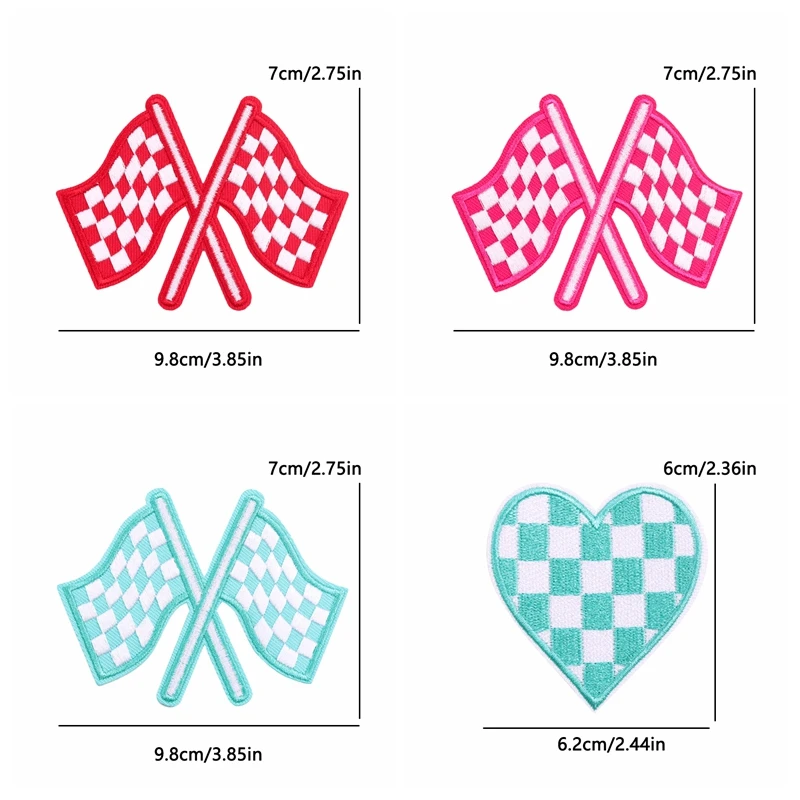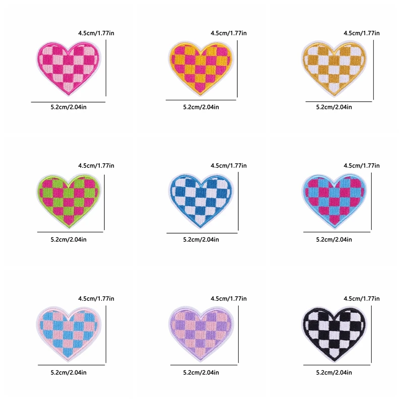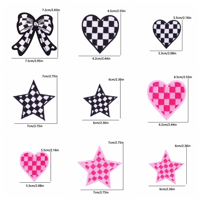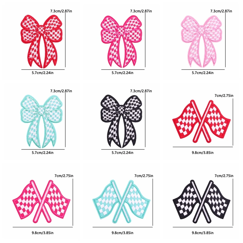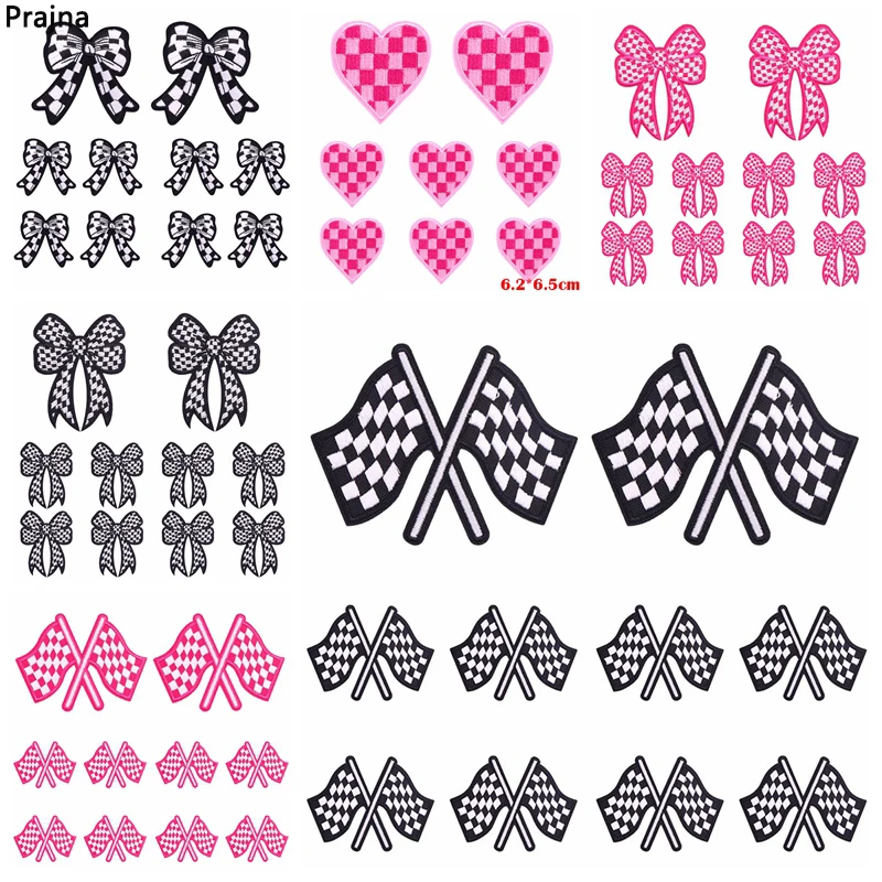 Pajarita con bordado a cuadros, 5 piezas, amor, corazón, bandera, tablero de ajedrez, parches para planchar, sombreros, mochila, decoración de costura, insignias bordadas