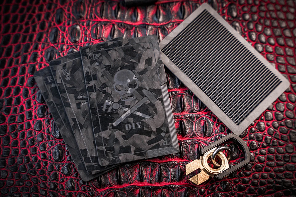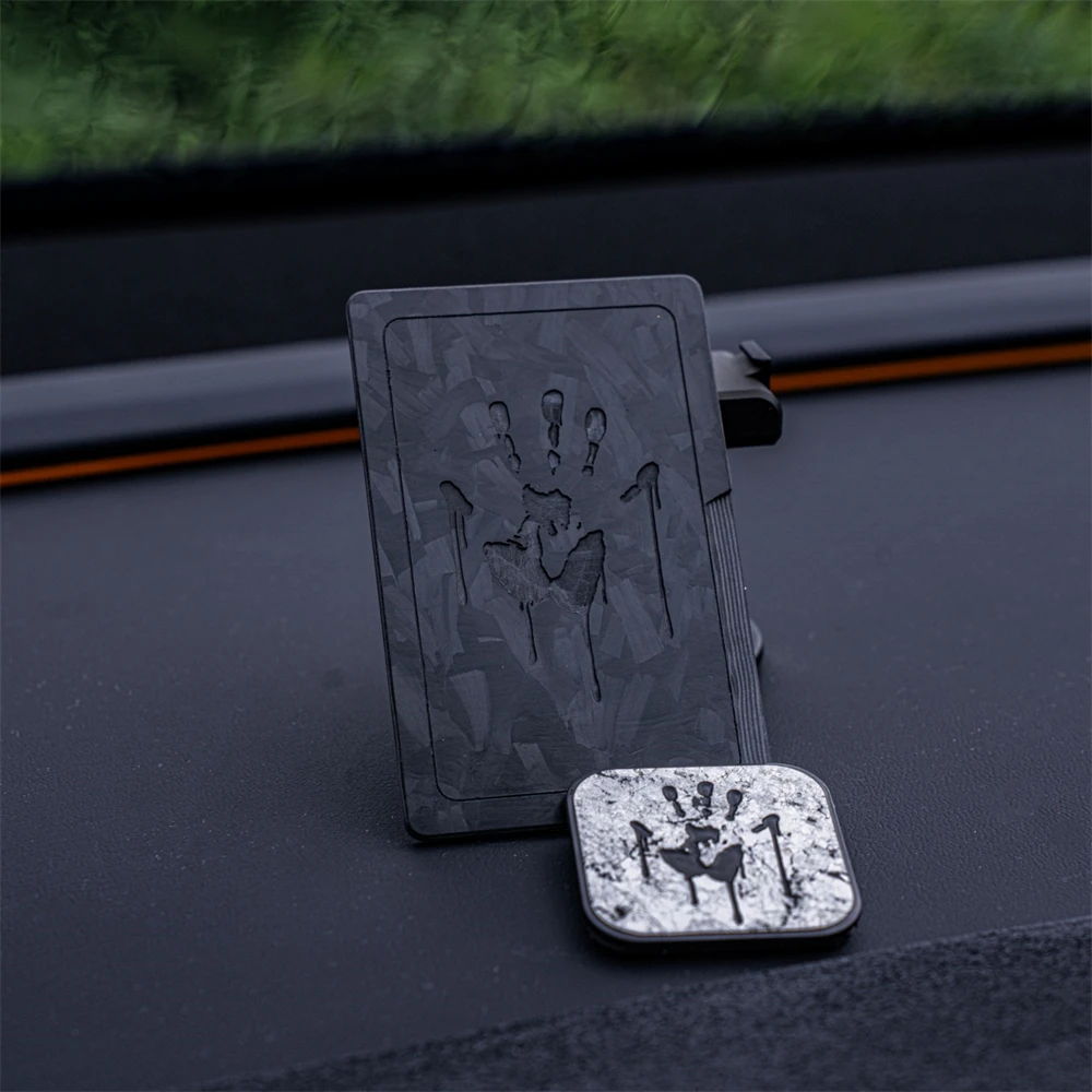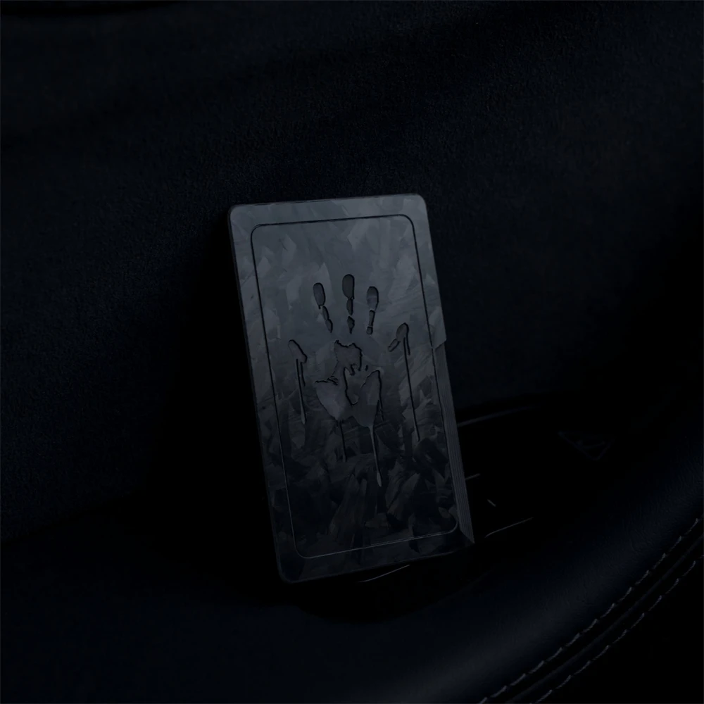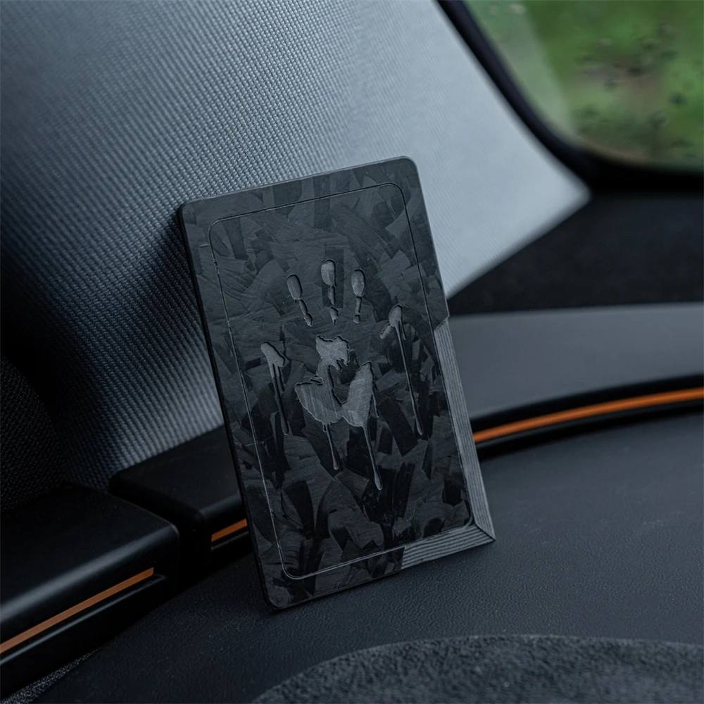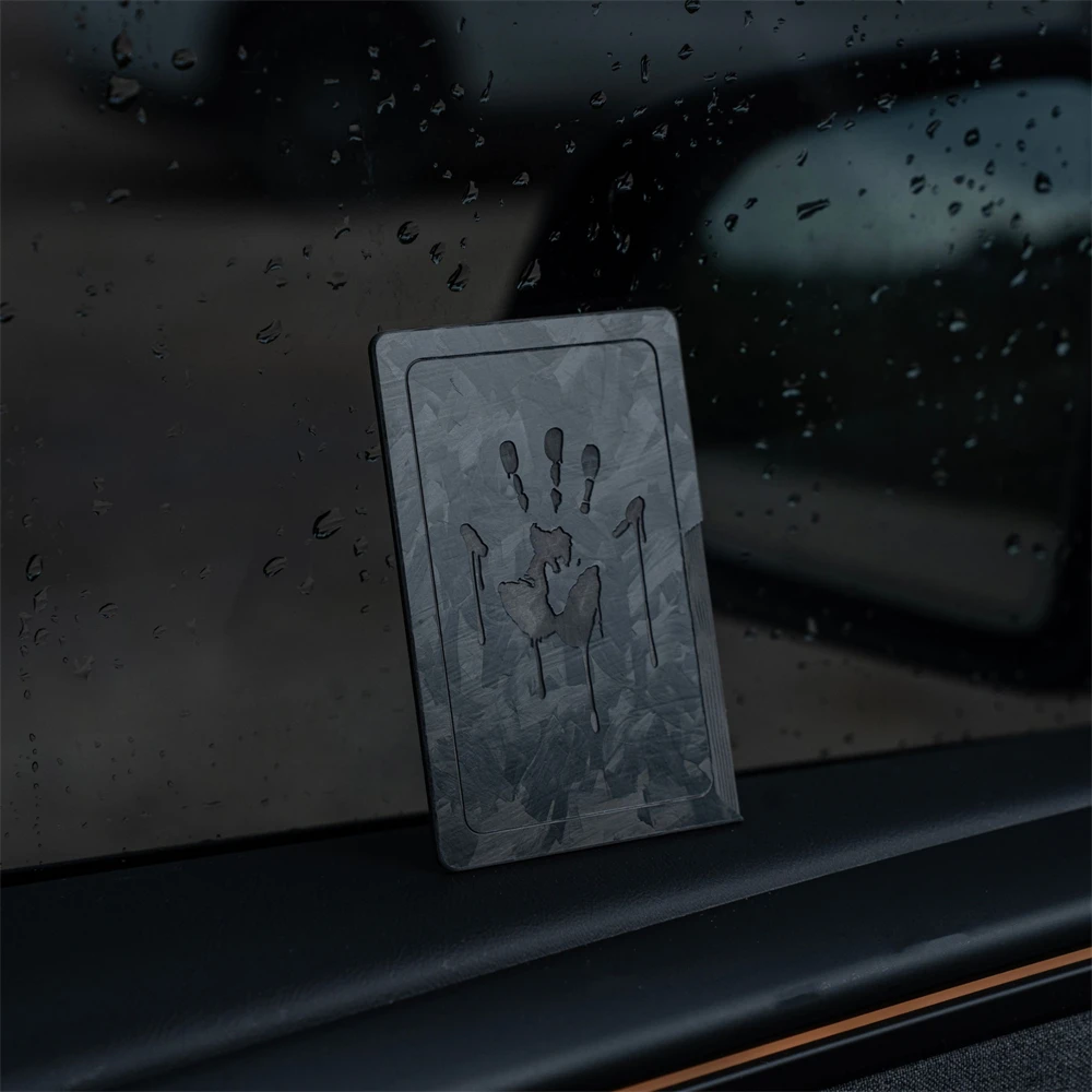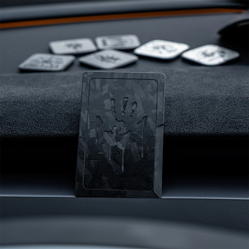 Palmprint-Tarjeta de cuchillo negro de carbono, parche de fibra de carbono EDC táctico con gancho para decoración de mochila de ropa