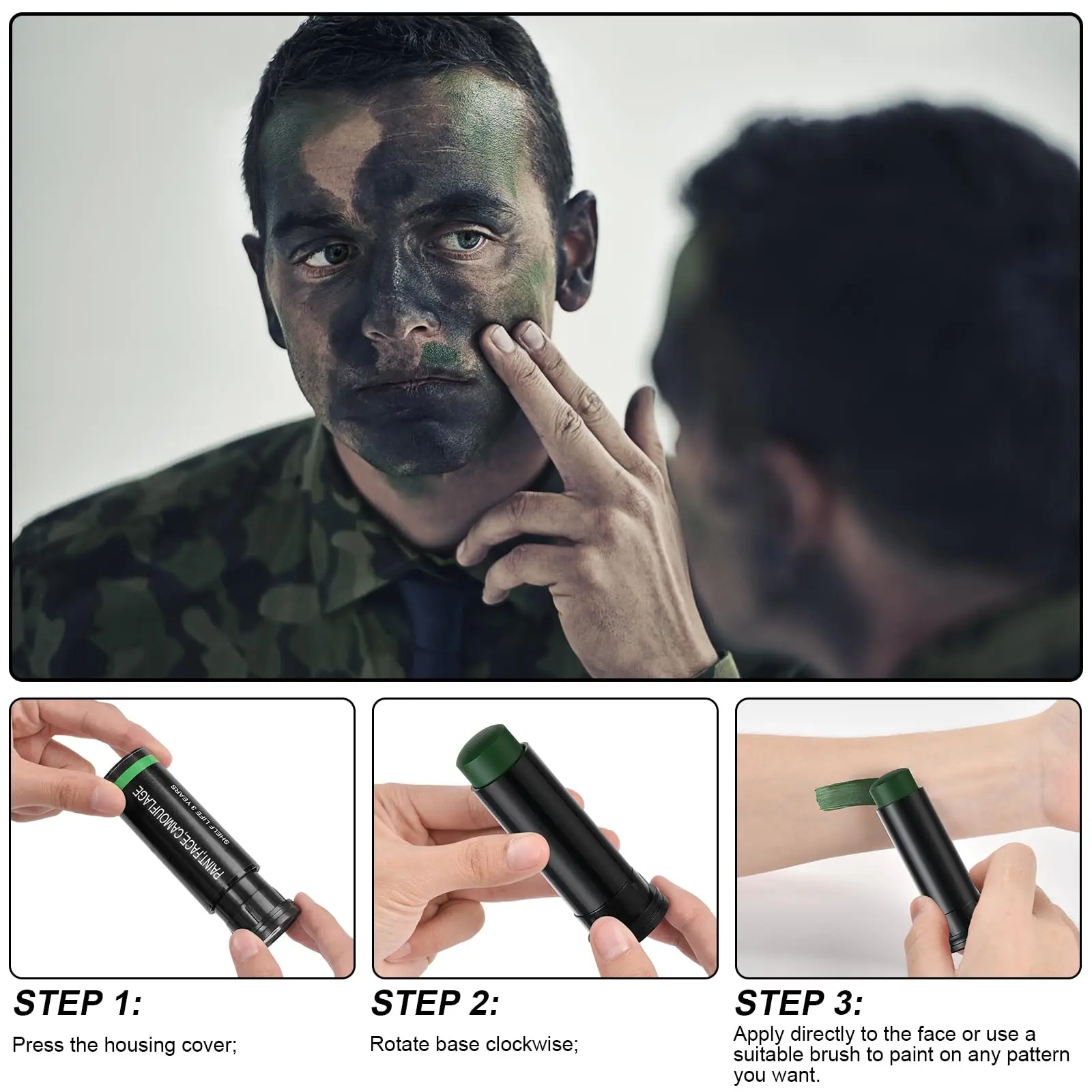 Palo de pintura facial para fanáticos del ejército, palo de tubo de pintura de camuflaje militar del bosque, Color crema, cuerpo y cara, maquillaje para fiestas de Halloween