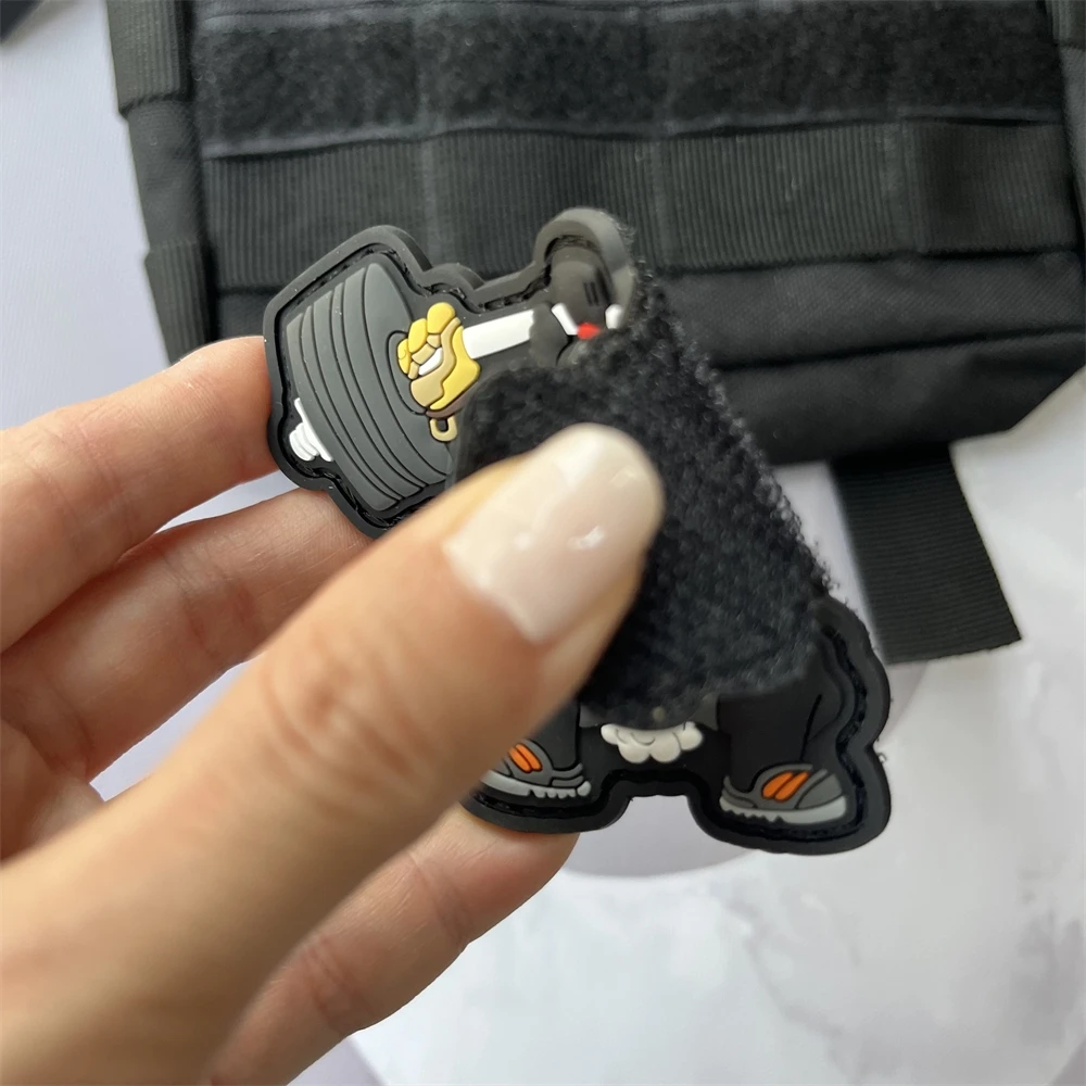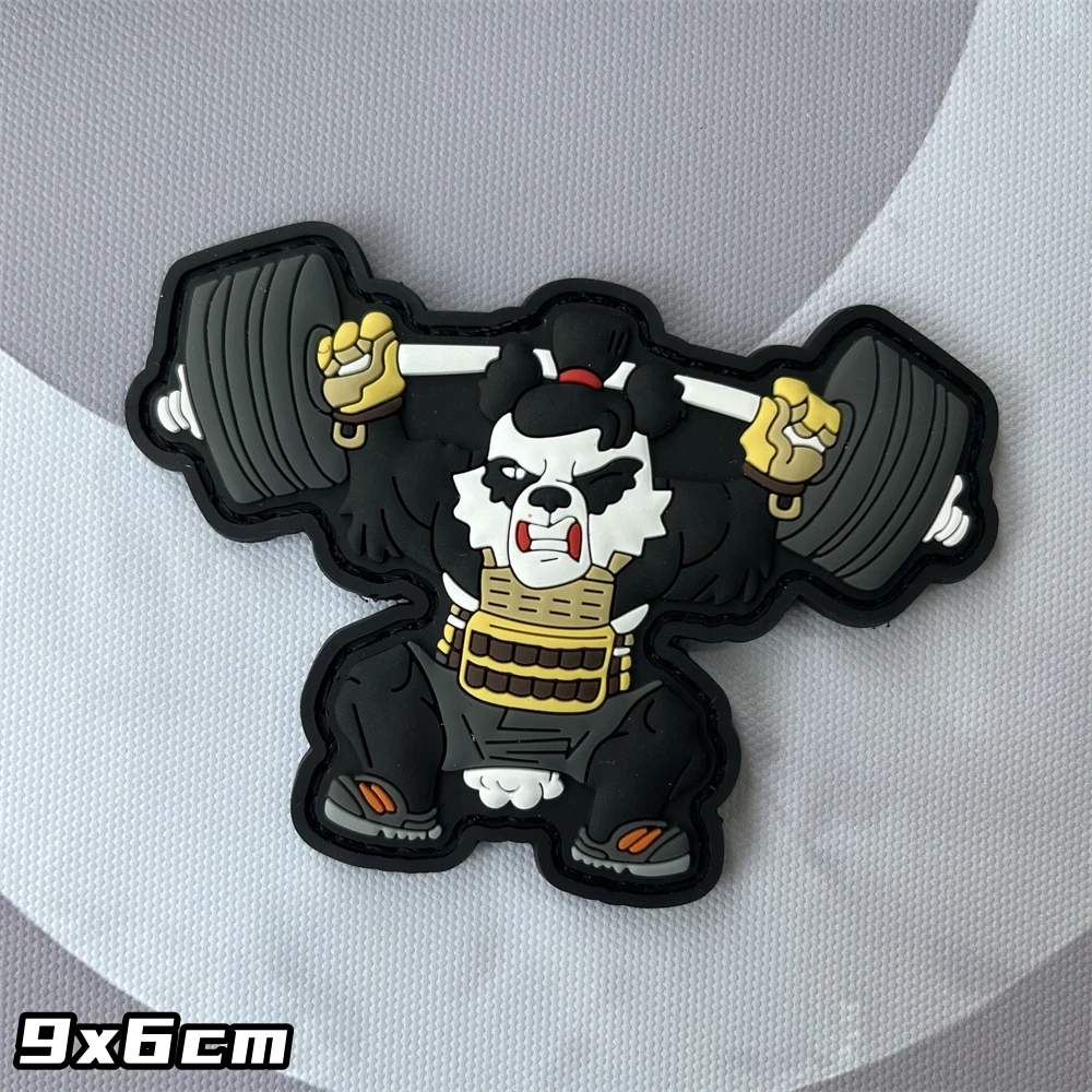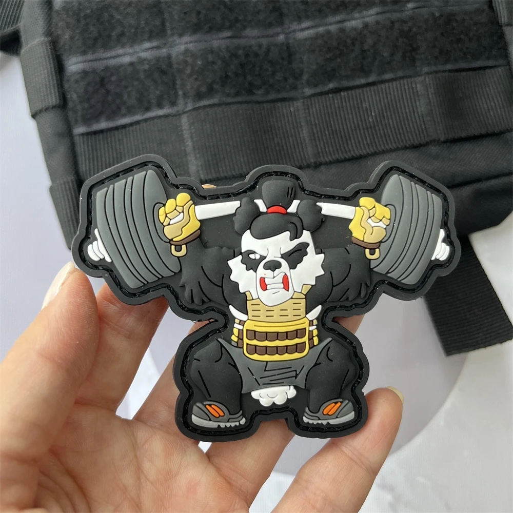 Panda táctico PVC gancho y bucle parches Fitness Barbell moral insignia mochila pegatina
