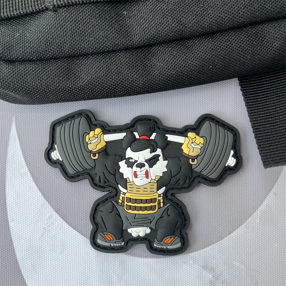 Panda táctico PVC gancho y bucle parches Fitness Barbell moral insignia mochila pegatina