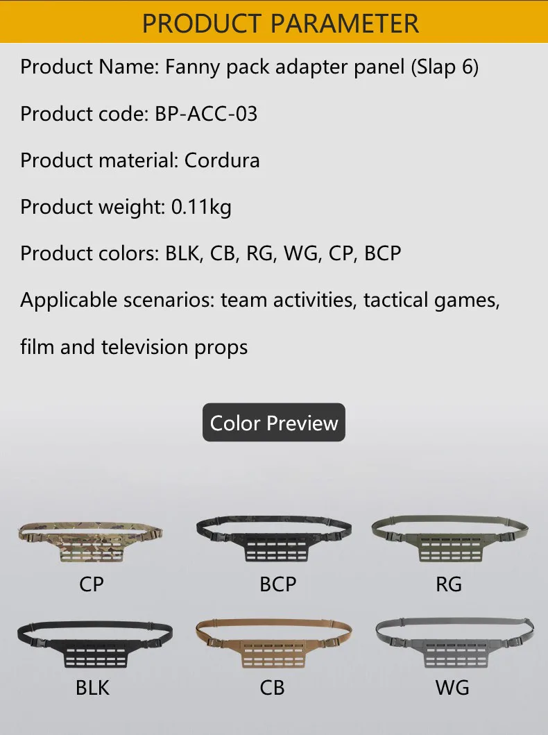 Nombre del producto: panel adaptador de riñonera (Slap 6)
