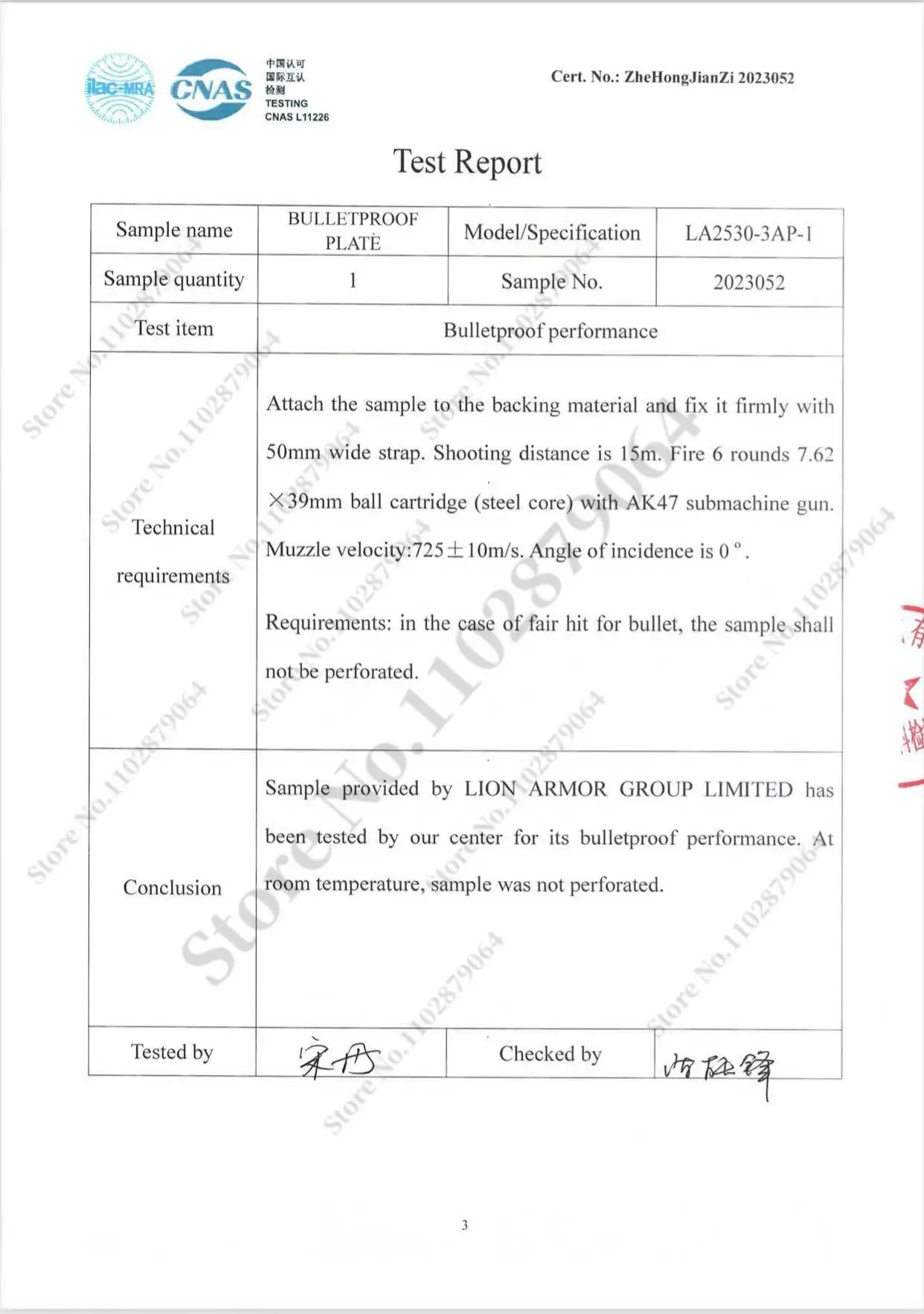 Bueno para resistir las balas AK47 de 7,62 mm x 39 mm LC/MSC / M193, no puede proteger contra las balas AK47 API/SS109/M855.