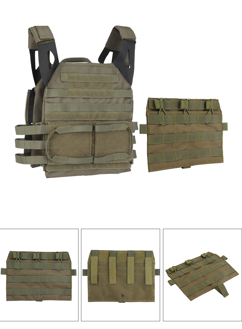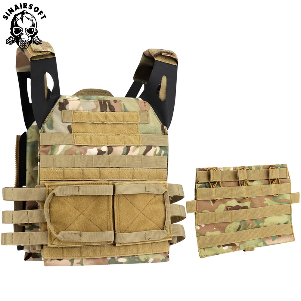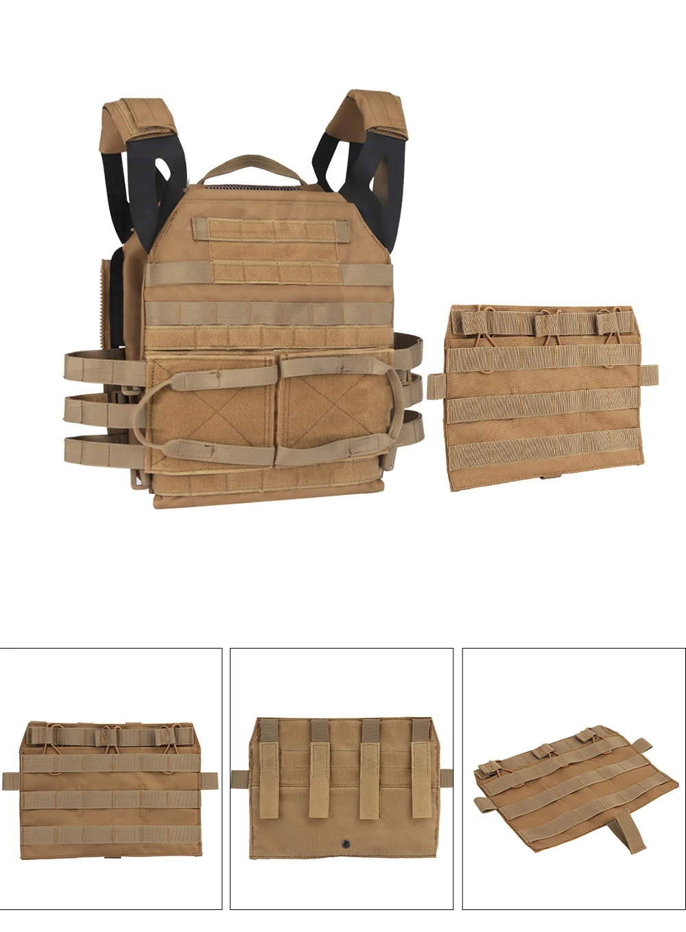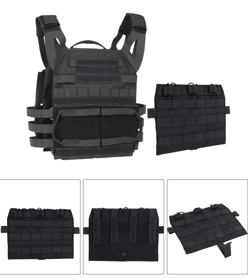 Diseño: Se fija a la bolsa frontal (estándar o MBAV) de AVS JPC 2.0 para proporcionar tres filas de correas MOLLE para sujetar kits.
